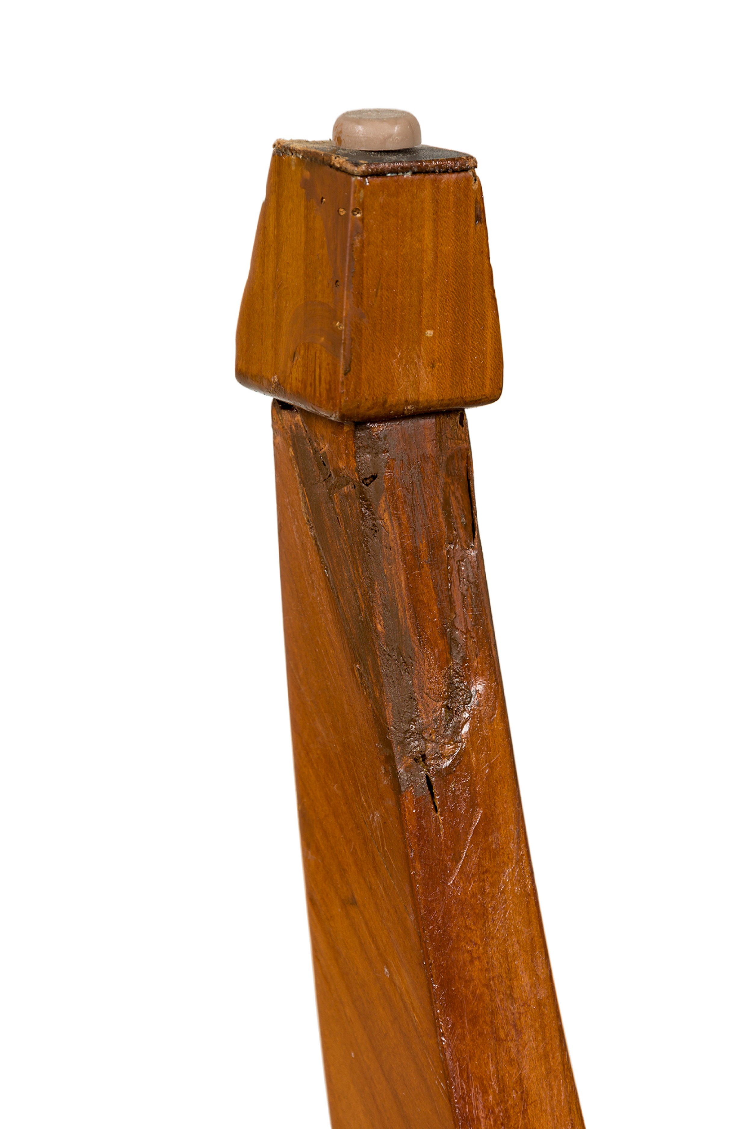Style: Mid-Century Materials & Techniques: Wood Category: Tables, Office/Library, Dining Room Condition: Broken leg, some wear to finish. Good; Wear consistent with age and use