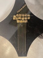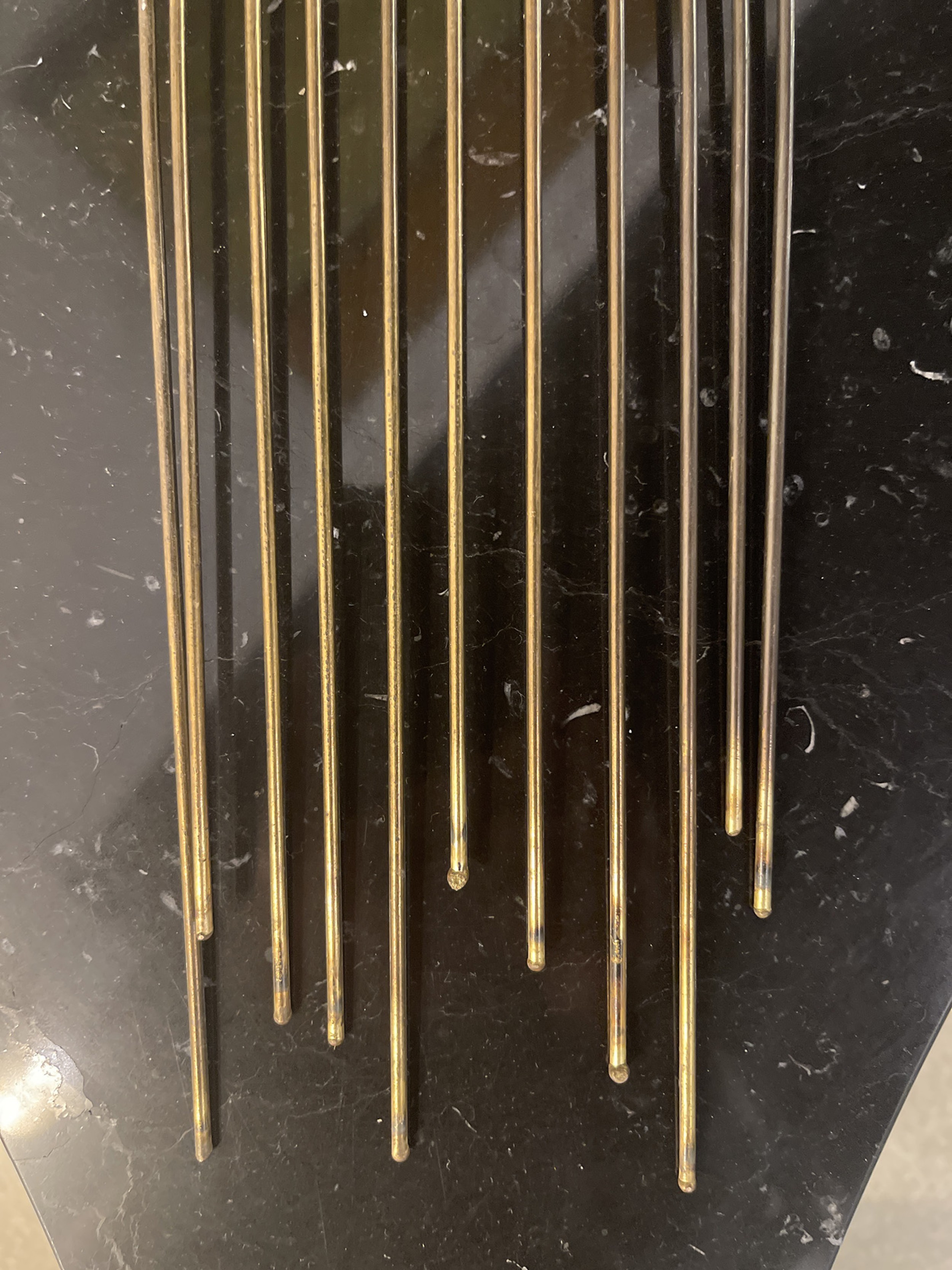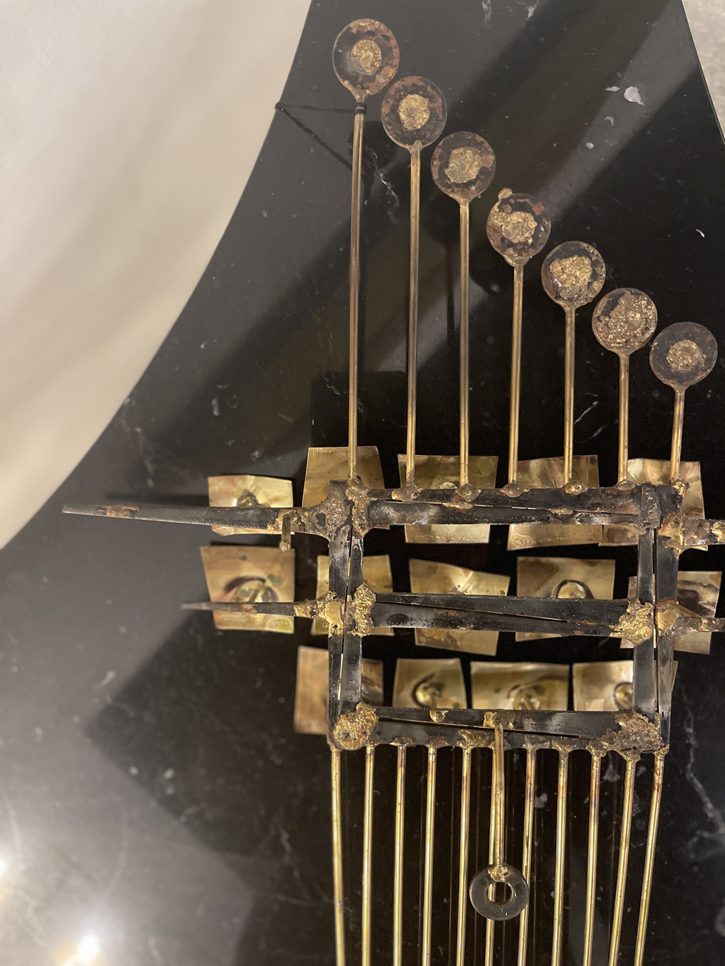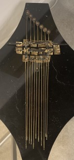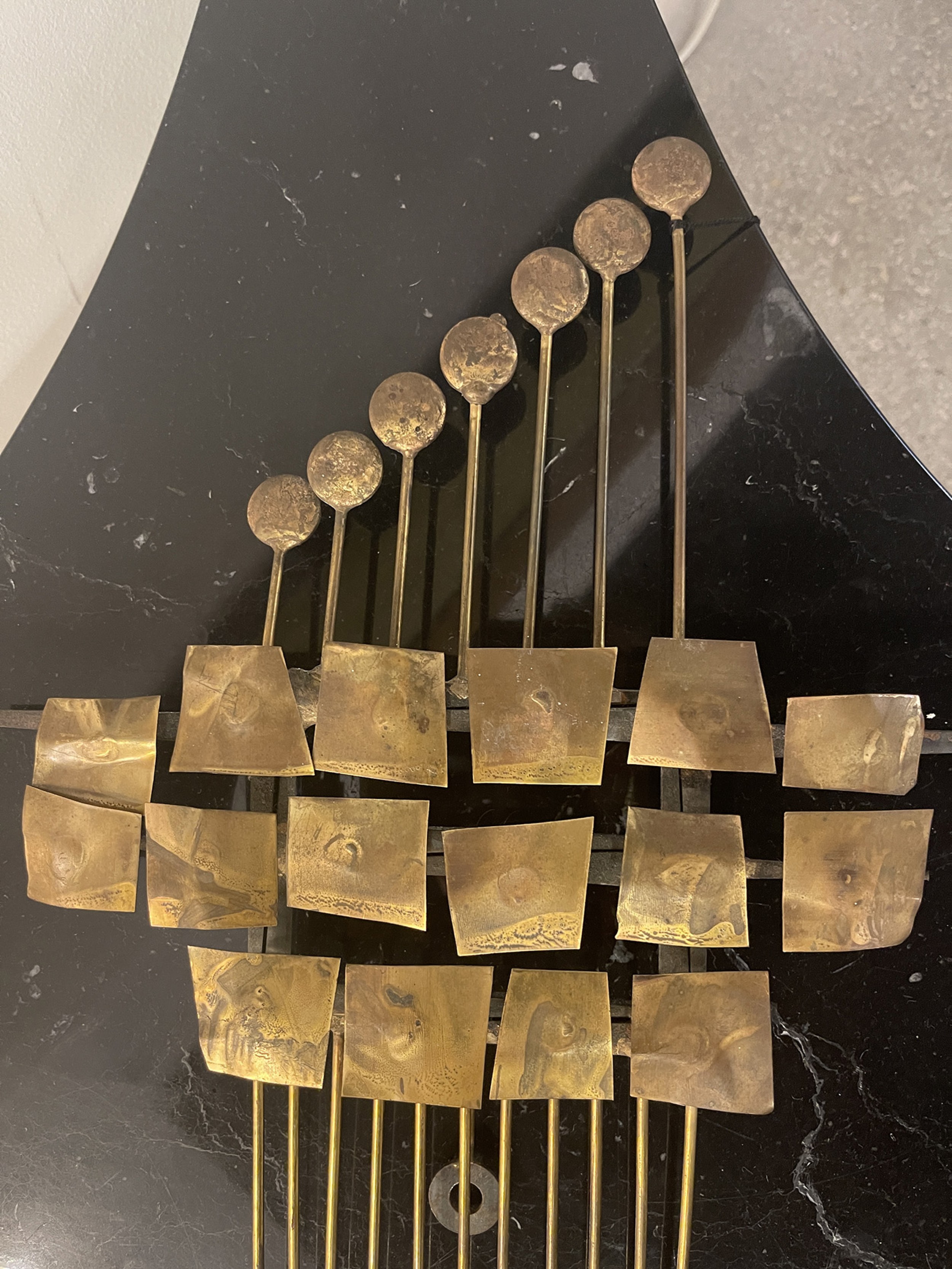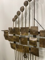 Mid-Century Italian Modern gilt metal wall sculpture having 11 vertical rods supporting circles and squares