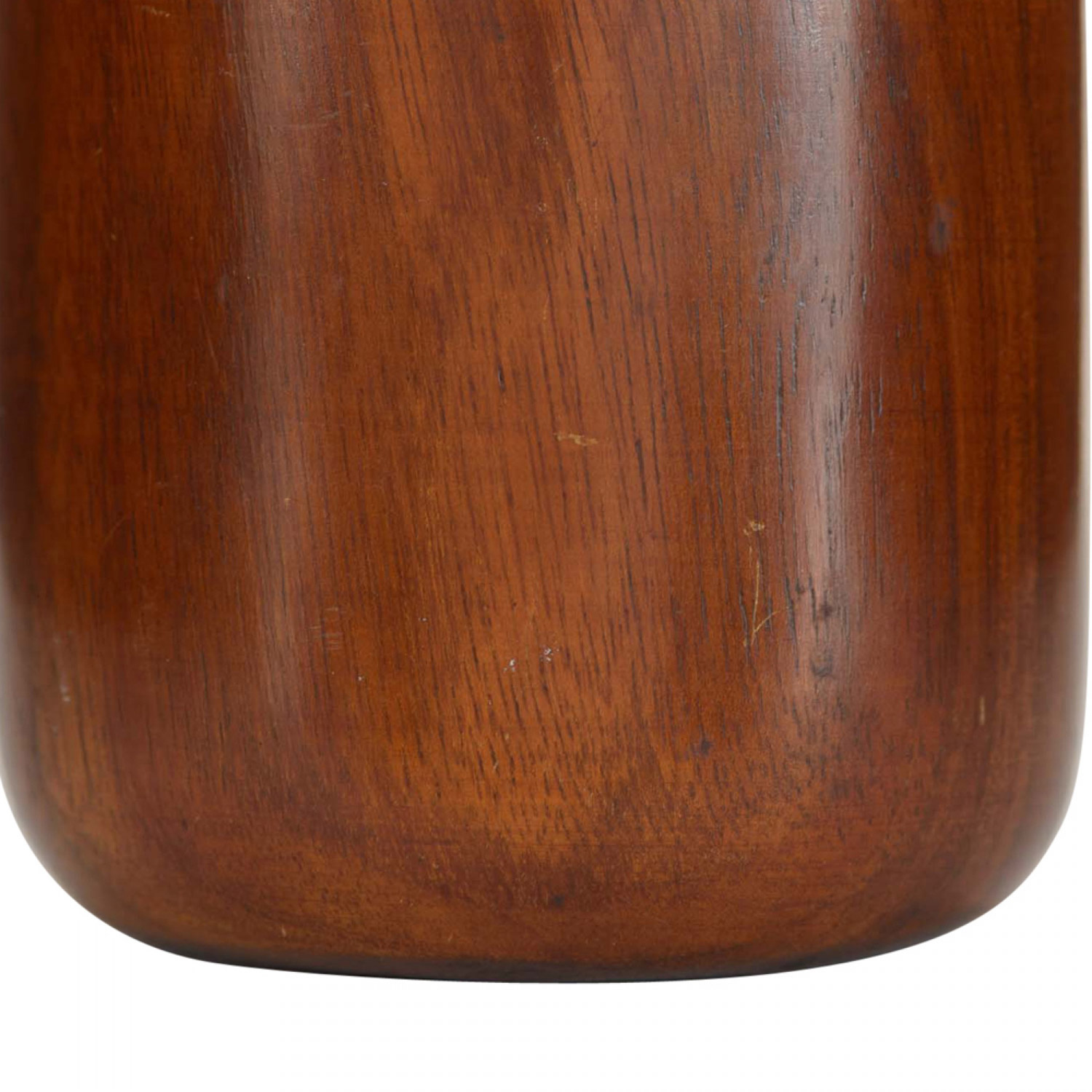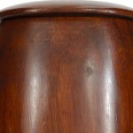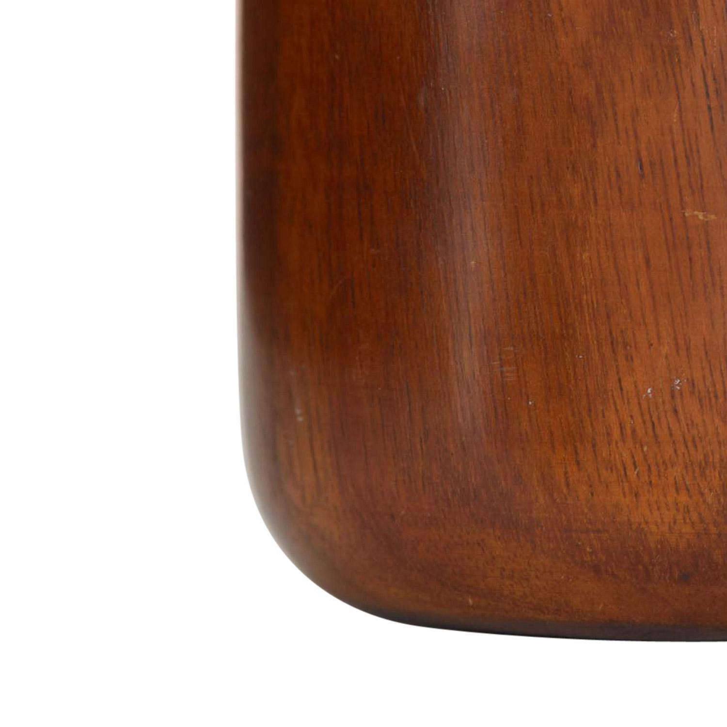 Mid-Century Scandinavian cylindrical wood box with a gold trim and a lift-off cover.