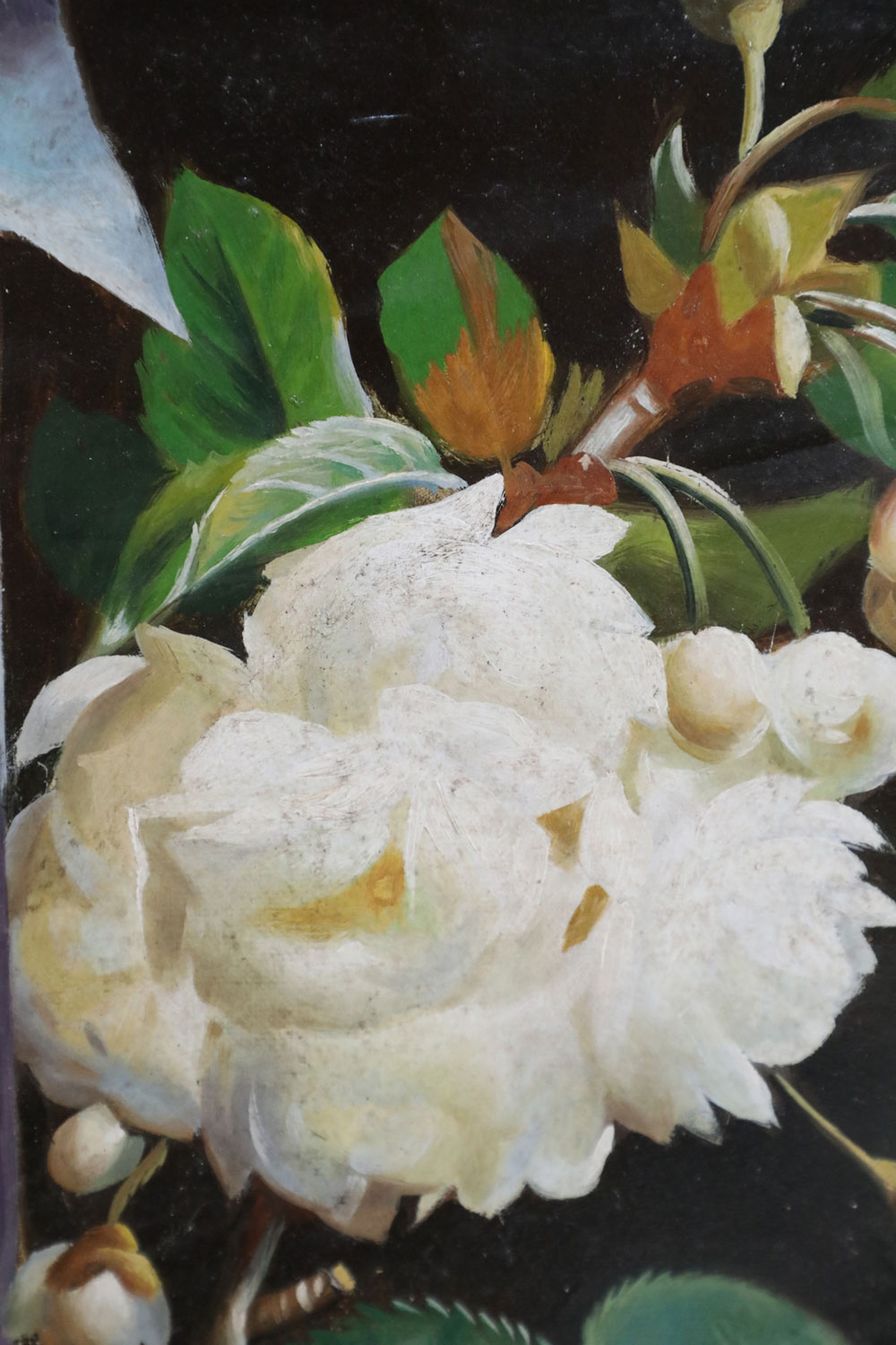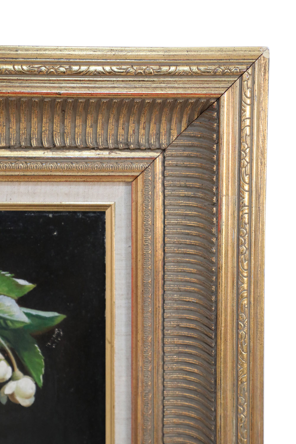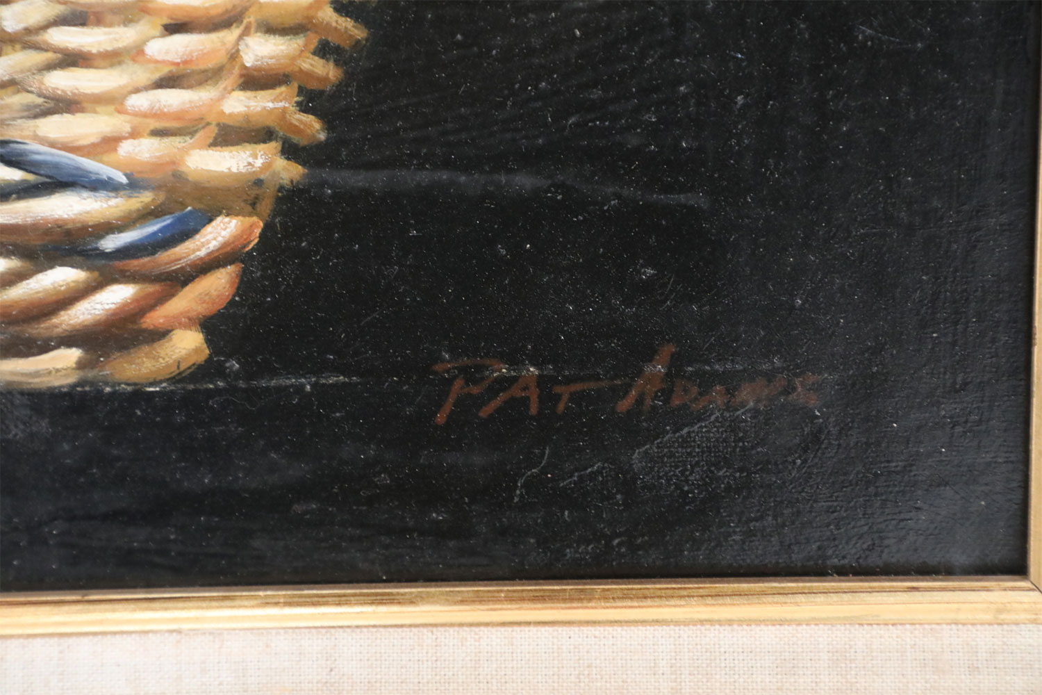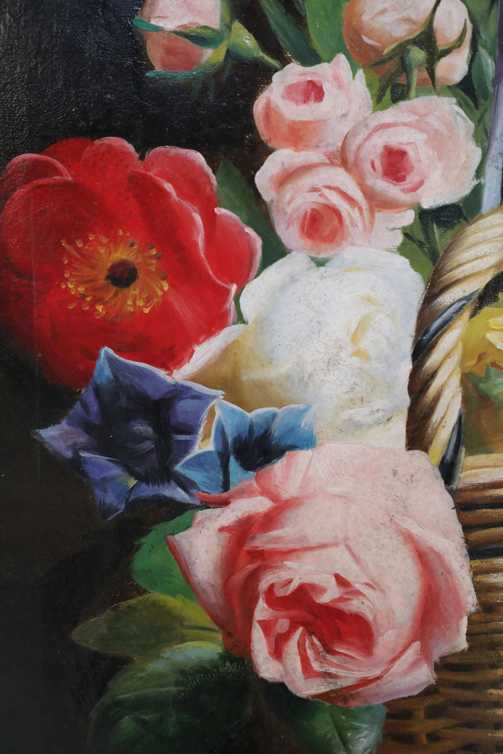 Mid-Century Still Life Oil Painting of a Basket of Flowers and Bow in a Giltwood Frame