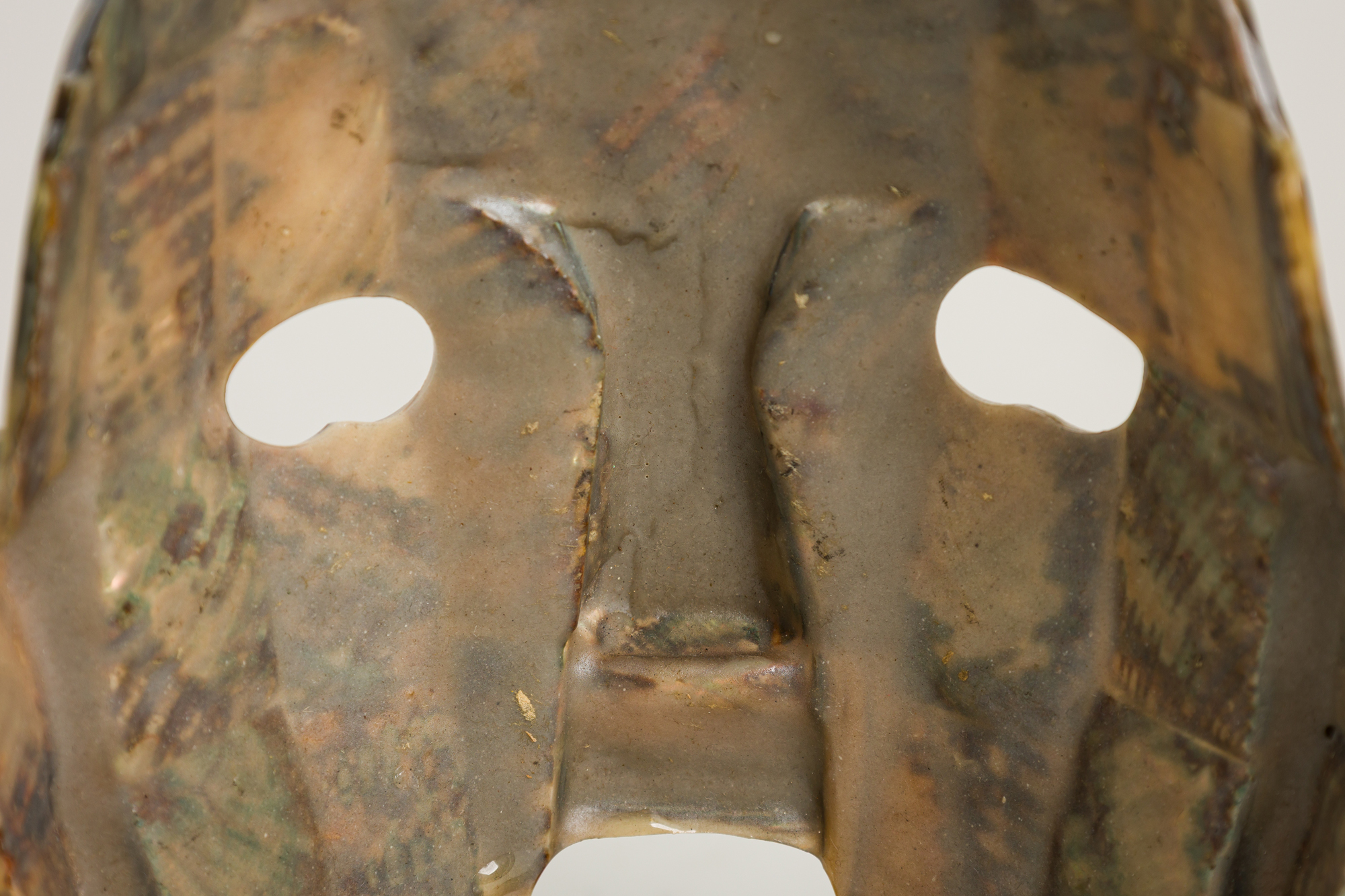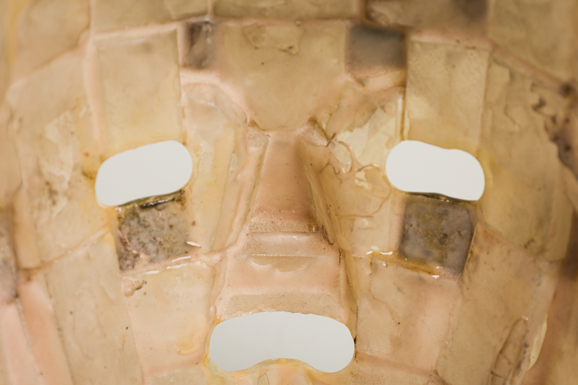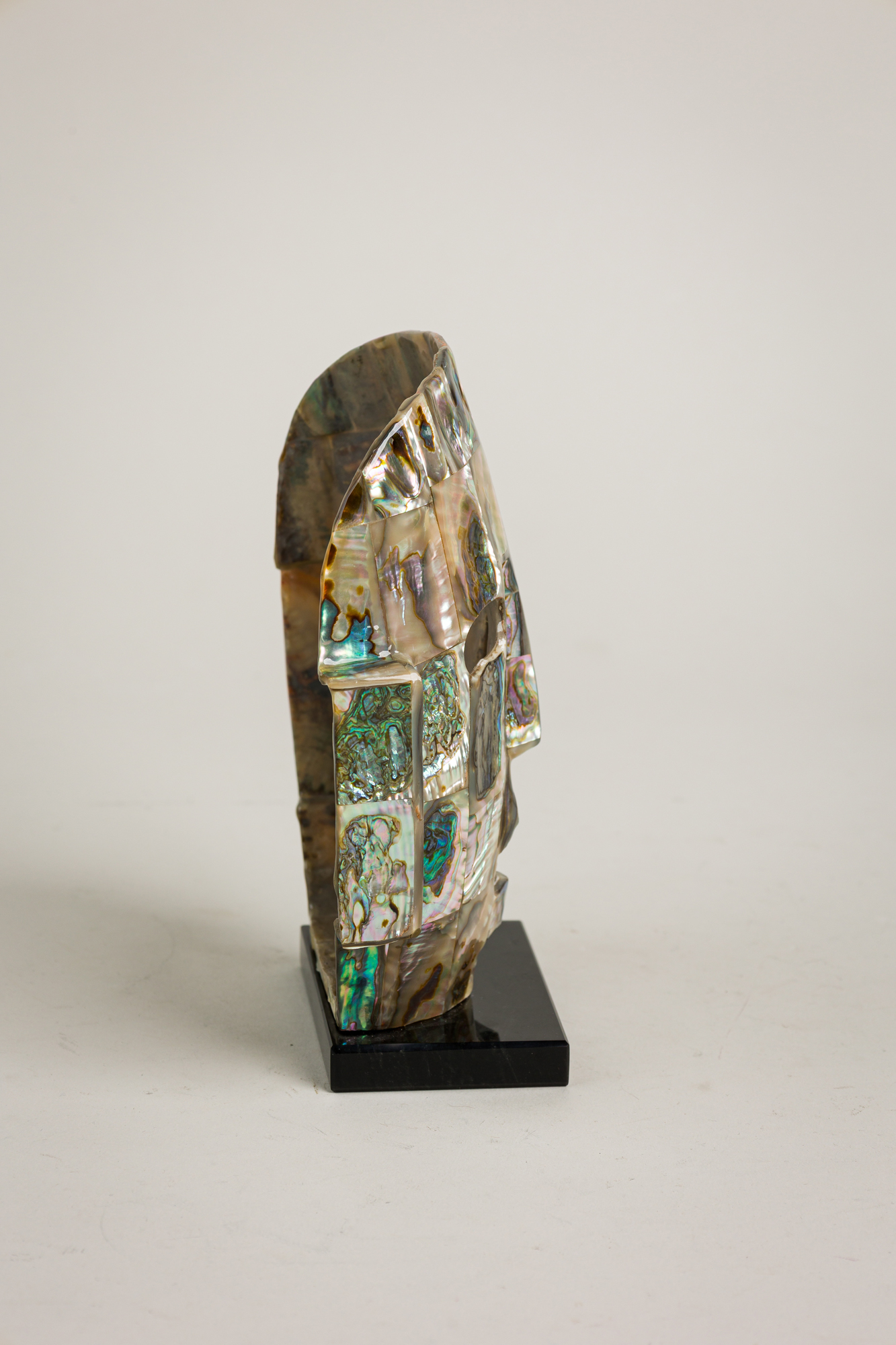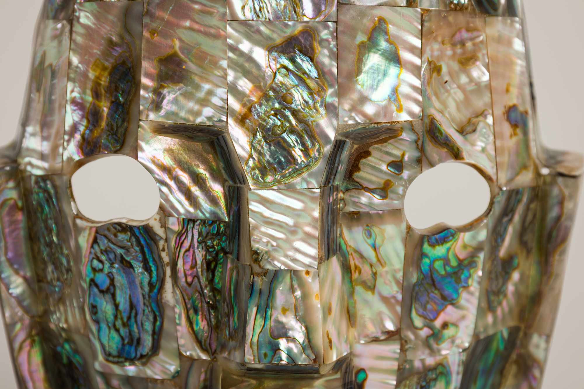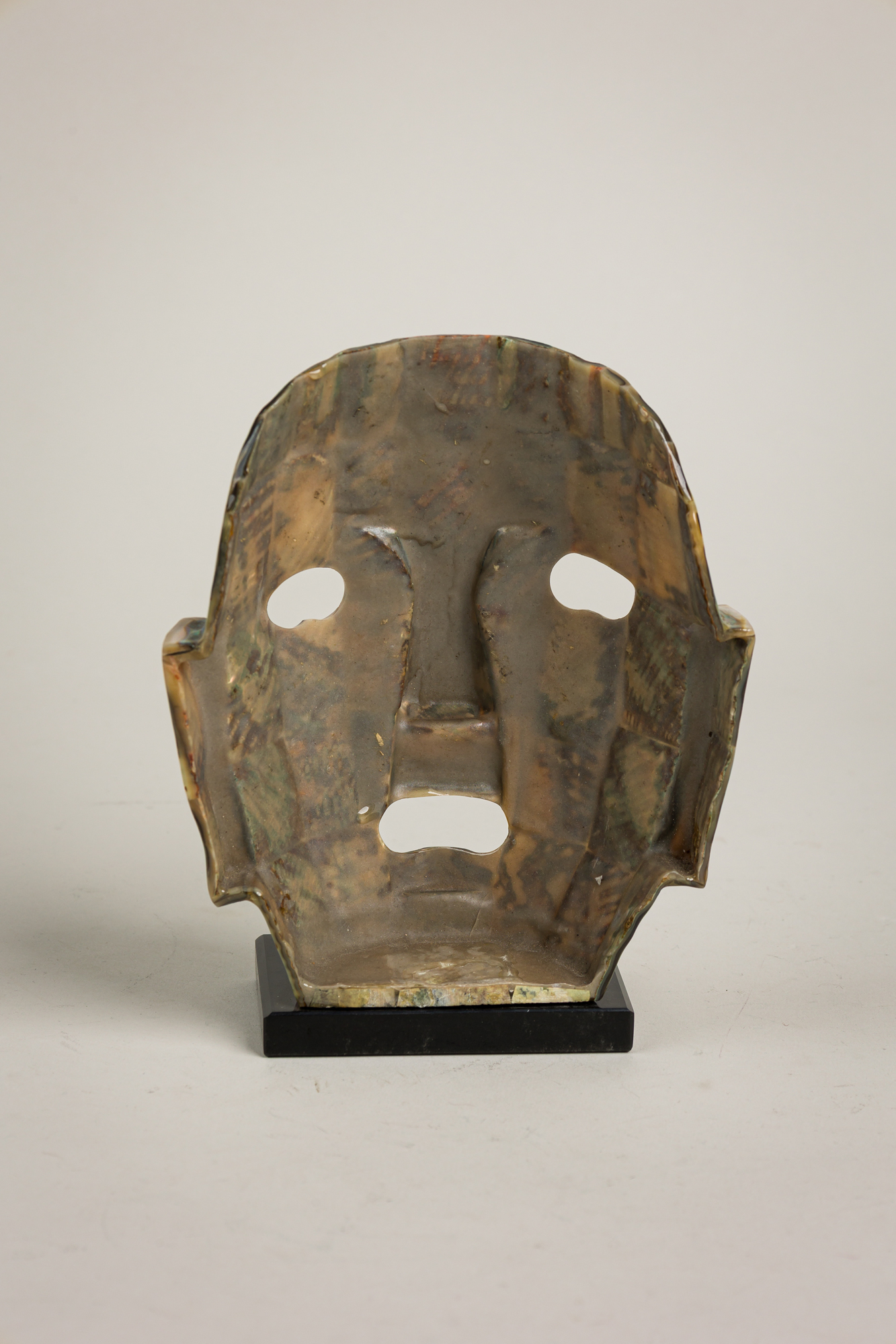 2 Mid-Century modern Pre-Columbian style Aztec masks made with various tesselated semi-precious stone (onyx, mother-of-pearl) (PRICED EACH).