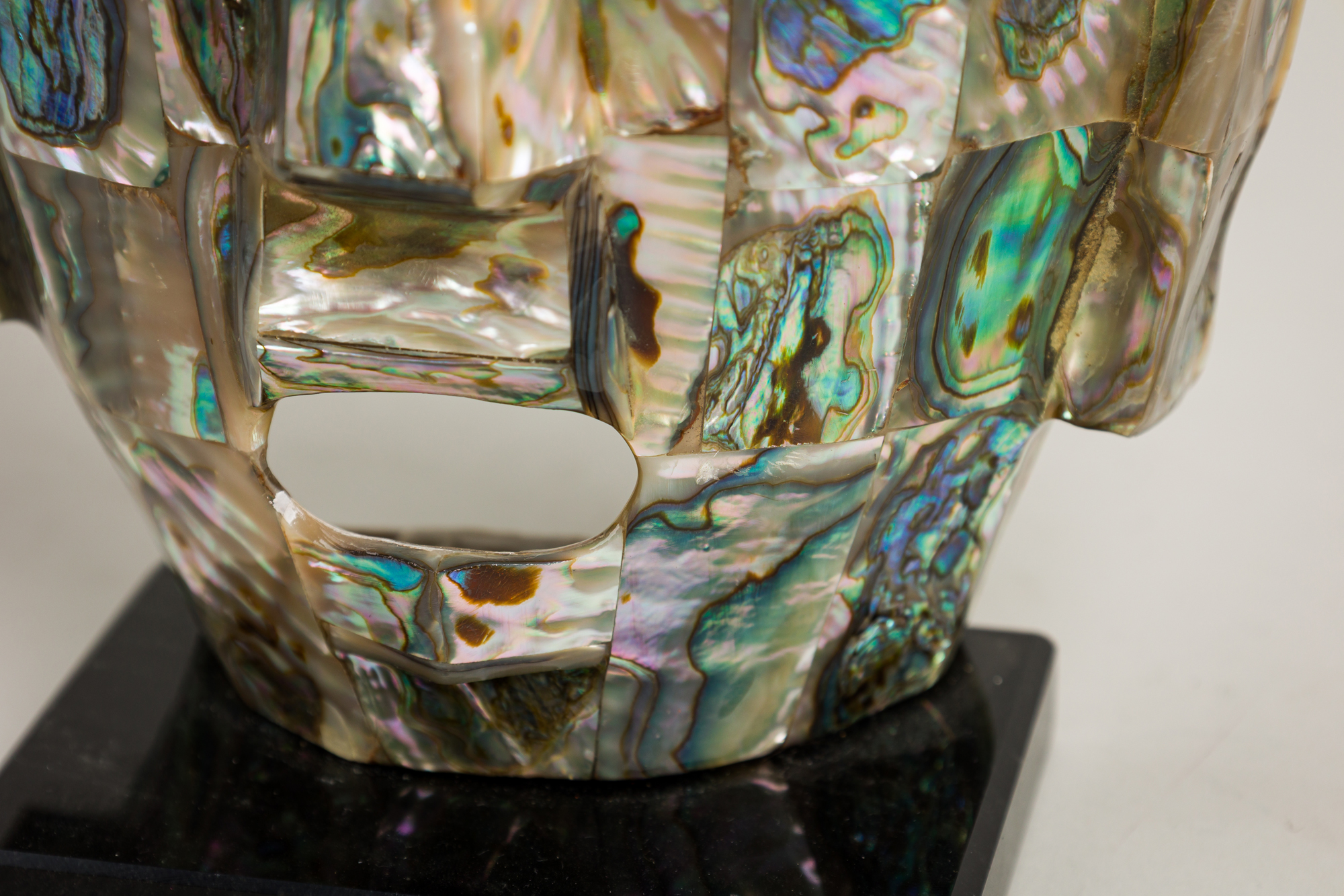 2 Mid-Century modern Pre-Columbian style Aztec masks made with various tesselated semi-precious stone (onyx, mother-of-pearl) (PRICED EACH)