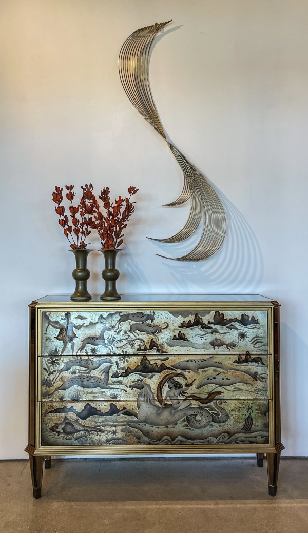 Curtis Jere is the pseudonym of the collaborative duo Curtis Freiler and Jerry Fels, who were renowned American designers and artists known for their innovative works in the field of furniture and decorative arts. Freiler and Fels joined forces in the mid-20th century and created a wide range of artistic pieces that seamlessly blended sculpture, metalwork, and functional design. Curtis Freiler was born in 1910 in Pennsylvania, while Jerry Fels was born in 1917 in Ohio. The two artists first crossed paths in the 1950s when they were both working at the same advertising agency in New York City. Sharing a common passion for art and design, they soon discovered their mutual interest in creating unique and unconventional pieces that challenged traditional notions of furniture and decorative arts. In 1963, Freiler and Fels established their collaborative studio and adopted the name Curtis Jere as a portmanteau of their first names. Their partnership flourished as they began producing an array of distinctive and visually captivating works. Curtis Jere's designs often featured abstract and geometric forms, incorporating elements of brass, bronze, and other metals. They were particularly known for their wall sculptures, which showcased intricate metalwork and a keen attention to detail. Throughout their career, Curtis Jere gained recognition for their ability to combine artistic expression with functional design. Their works were characterized by a sense of playfulness, often incorporating whimsical motifs and unexpected materials. Their pieces could be found in both private collections and public spaces, including museums and galleries around the world. Curtis Jere's popularity reached its peak during the 1960s and 1970s when their unique style resonated with the contemporary design sensibilities of the era. Their works became highly sought after by collectors and enthusiasts alike, and they gained a reputation as pioneers in the field of decorative arts. While Curtis Jere's partnership came to an end in the 1980s, their legacy continues to be celebrated today. Their designs have become iconic representations of mid-century modernism and are highly valued by collectors of vintage and retro furniture. The enduring appeal of Curtis Jere's creations lies in their ability to seamlessly blend art and design, creating functional pieces that are simultaneously visually striking and thought-provoking. Curtis Freiler passed away in 2013 at the age of 103, while Jerry Fels passed away in 2008 at the age of 90. Despite their departure, their