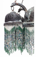 Style: Middle Eastern Materials & Techniques: Glass, brass, beaded, dome, fringe Category: Lighting Condition: Shades are missing several strands of beads