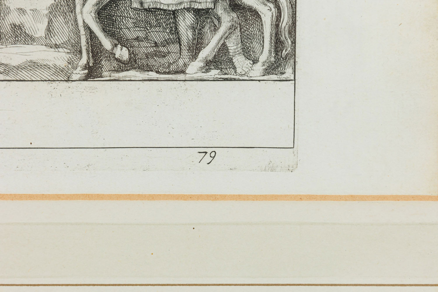 Italian Neo-classic style prints of various ancient Roman historical scenes matted in a green painted and gold trim frame (part of a set of 15; associated Pieces: 040102A-O)