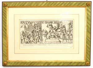 15 Italian Neo-classic style prints of various ancient Roman historical scenes matted in a green painted and gold trim frame (available individually 041020A-O; PRICED EACH)