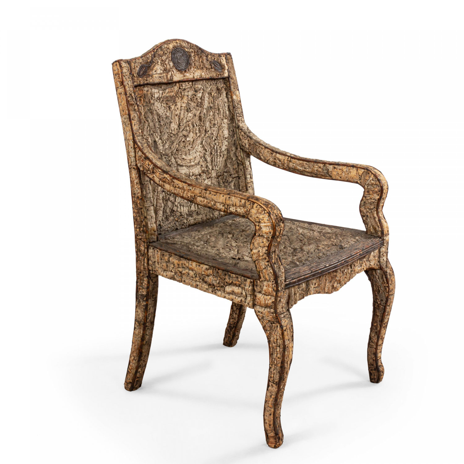 Rustic Continental Neoclassic style cork & twig arm chair. (Scandinavian, late 19th/20th Cent).