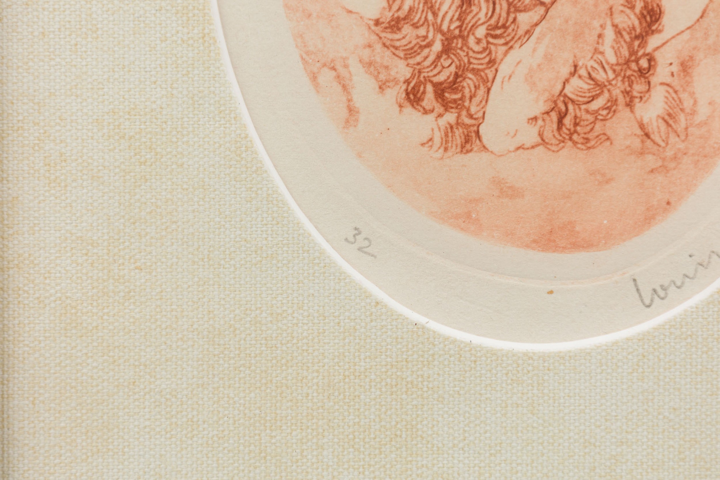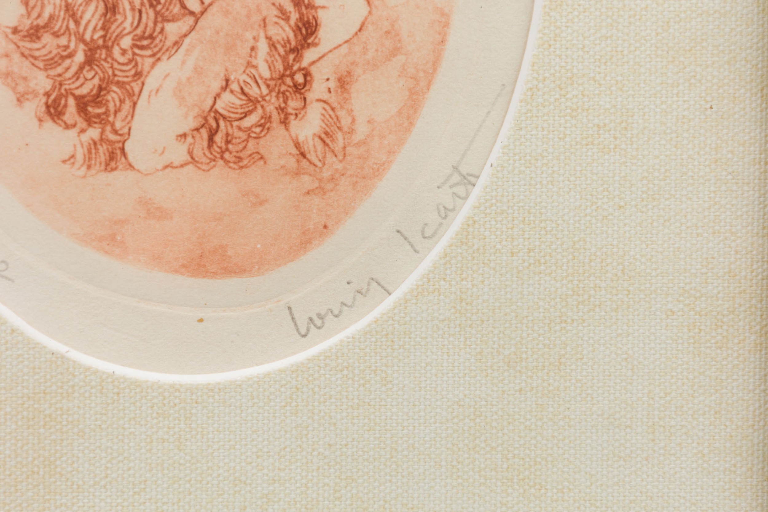 ICART French Art Deco gilt framed lithograph with scene of satyr and lady