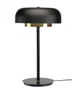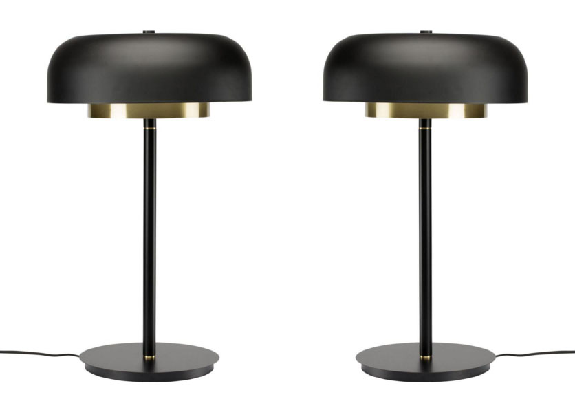 PAIR of Contemporary black matte steel table lamps with a domed metal shade and a circular base