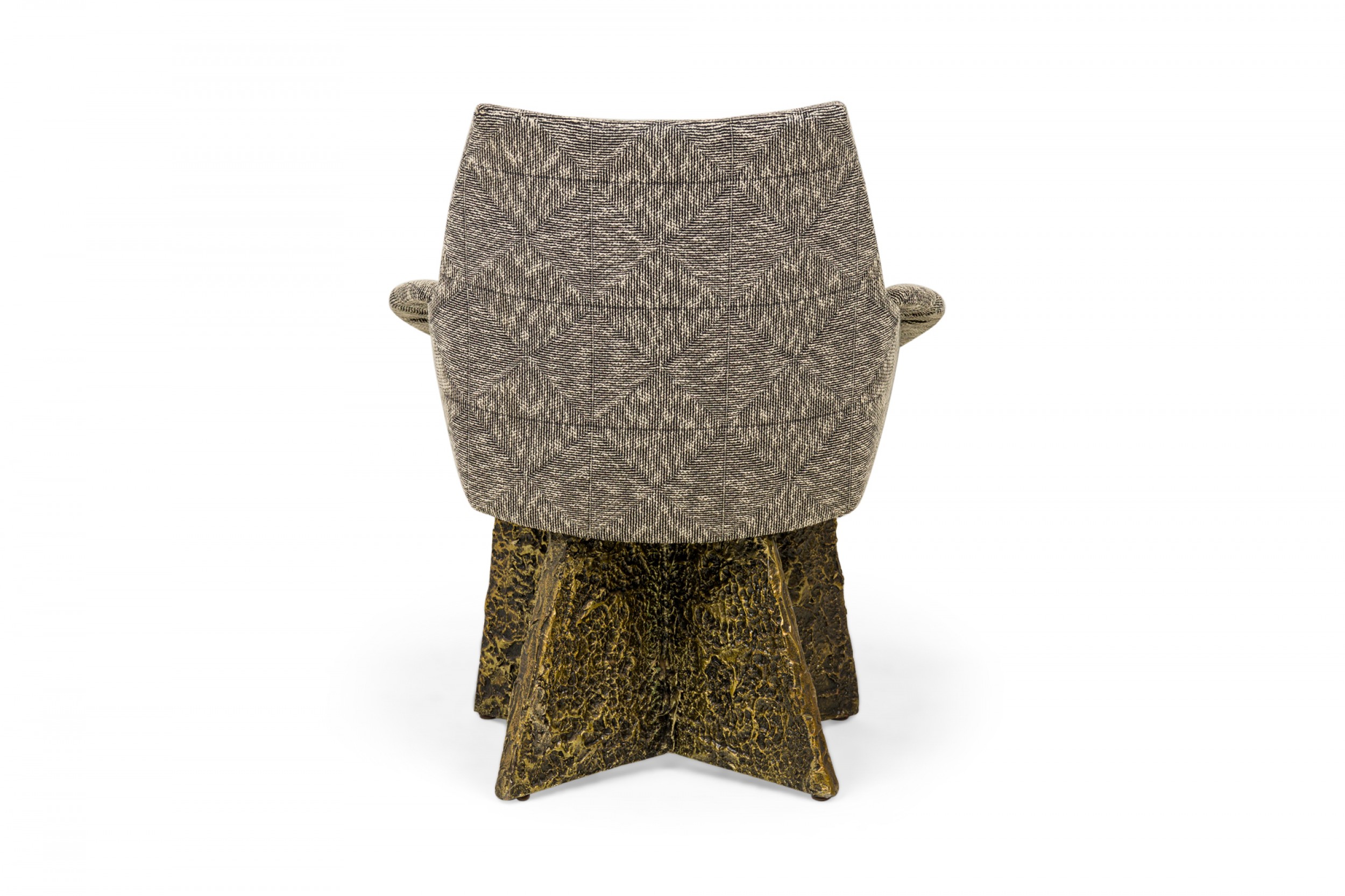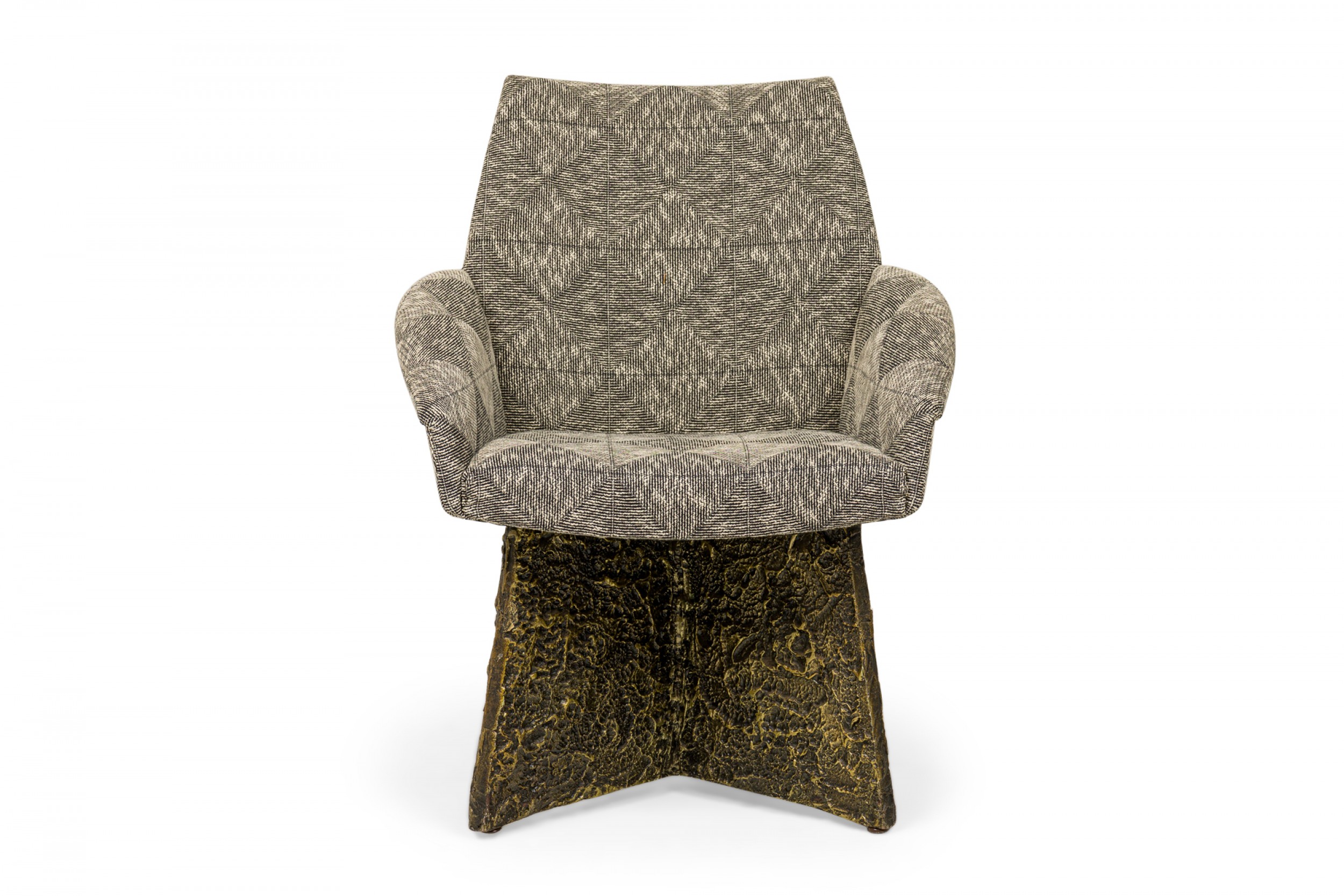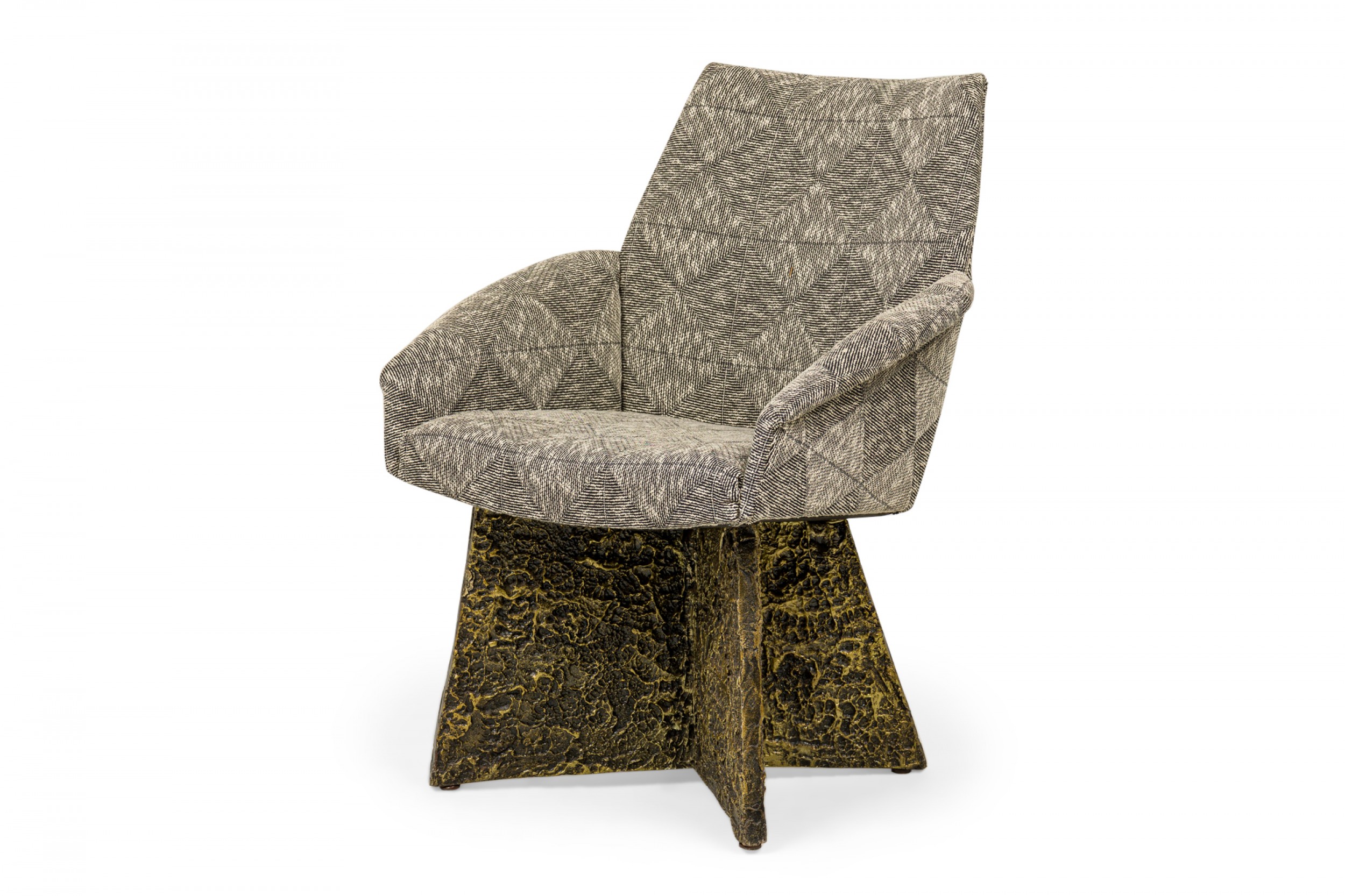 PAIR of Mid-Century armchairs with black and white diamond patterned upholstery atop an X shaped molted cast plastic base (In the manner of ADRIAN PEARSALL) (PRICED BY THE PAIR).