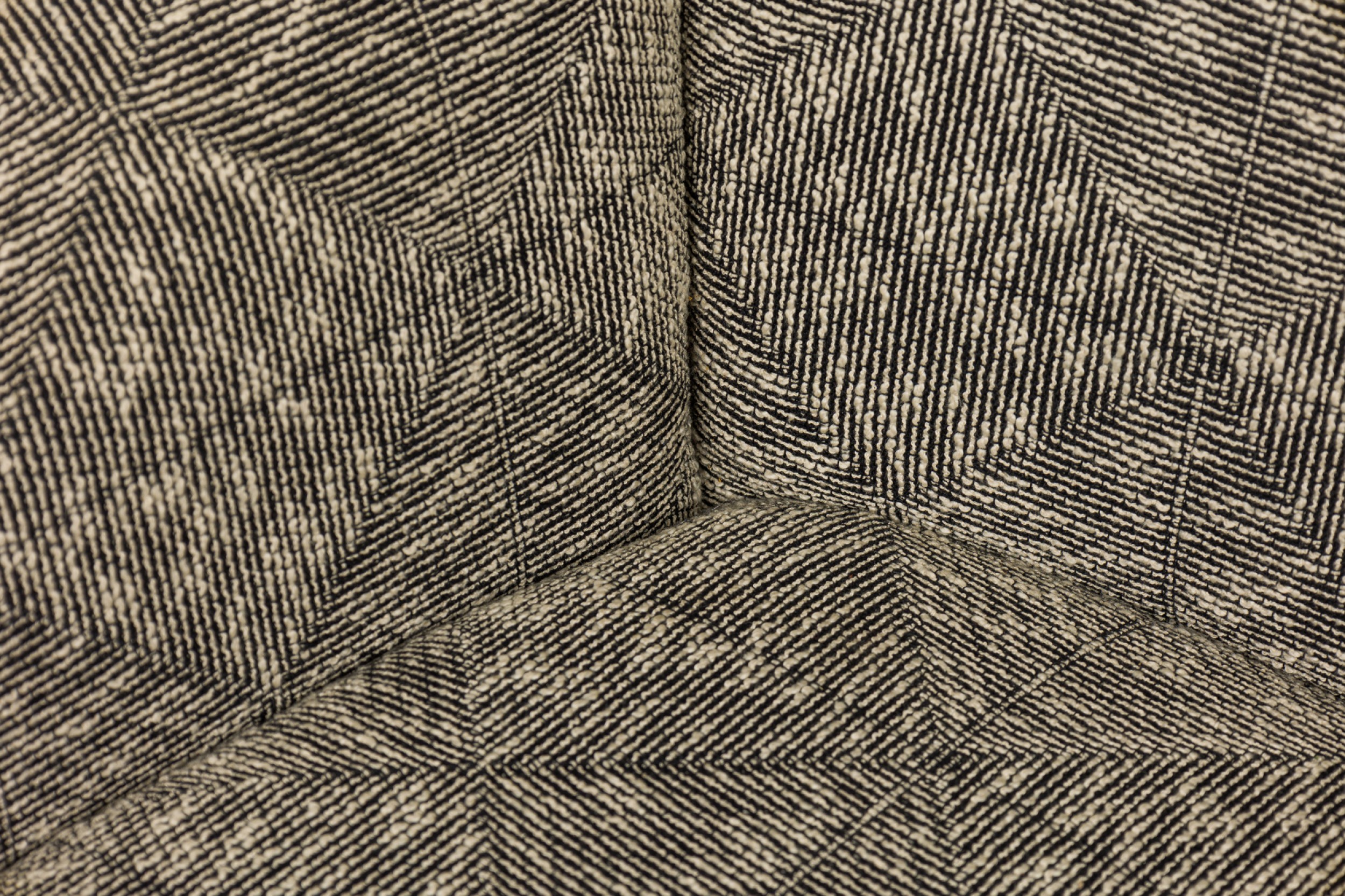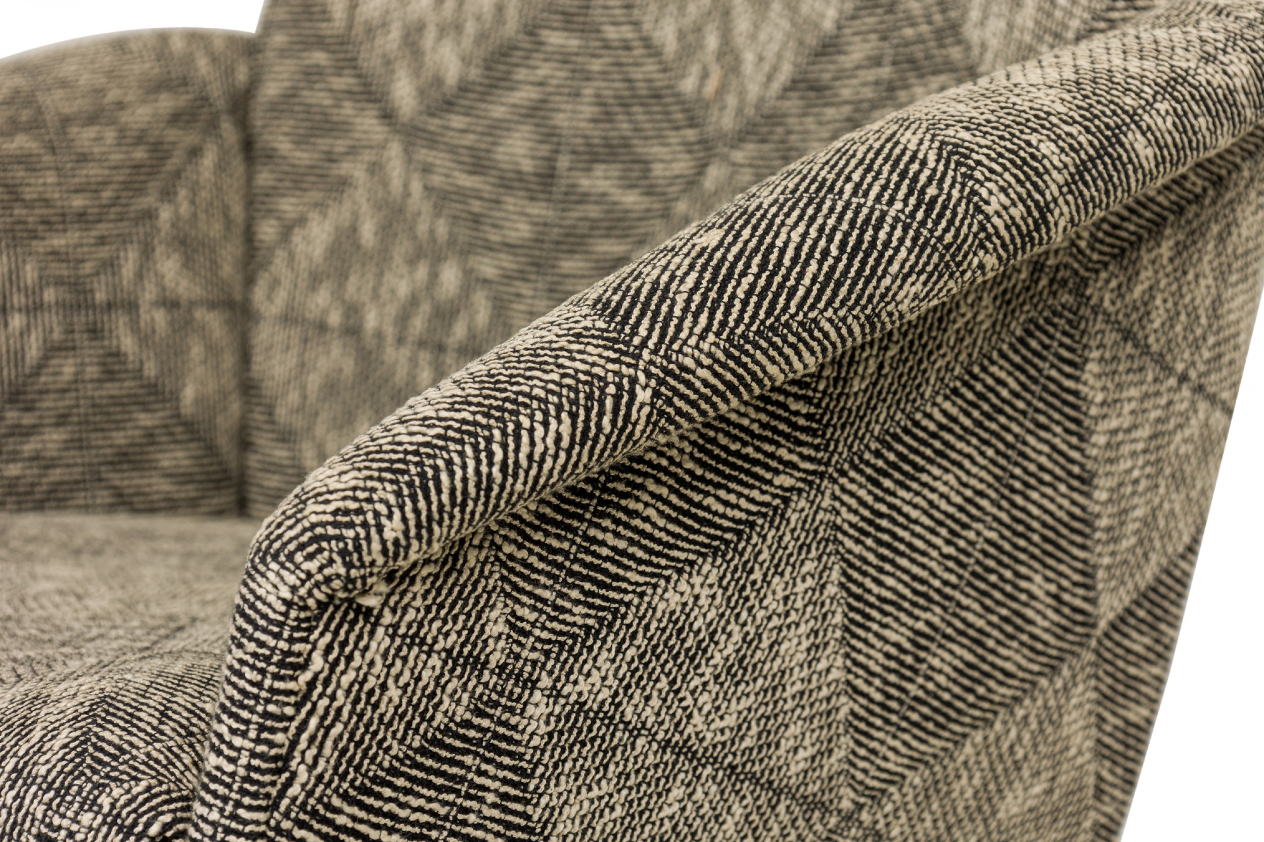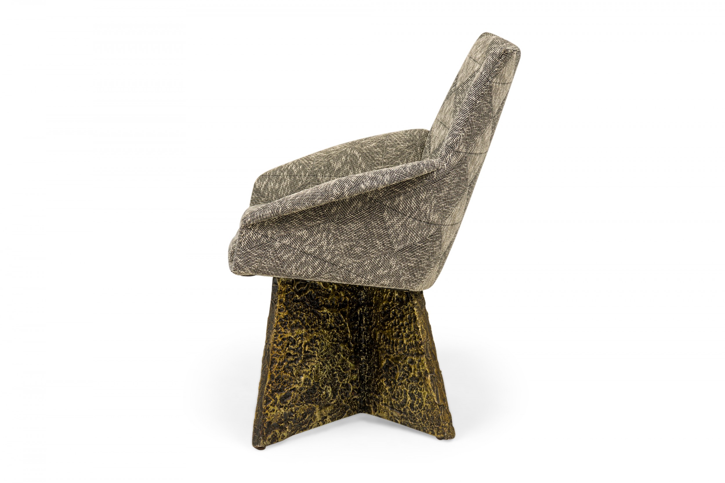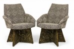 PAIR of Mid-Century armchairs with black and white diamond patterned upholstery atop an X shaped molted cast plastic base (In the manner of ADRIAN PEARSALL) (PRICED BY THE PAIR).