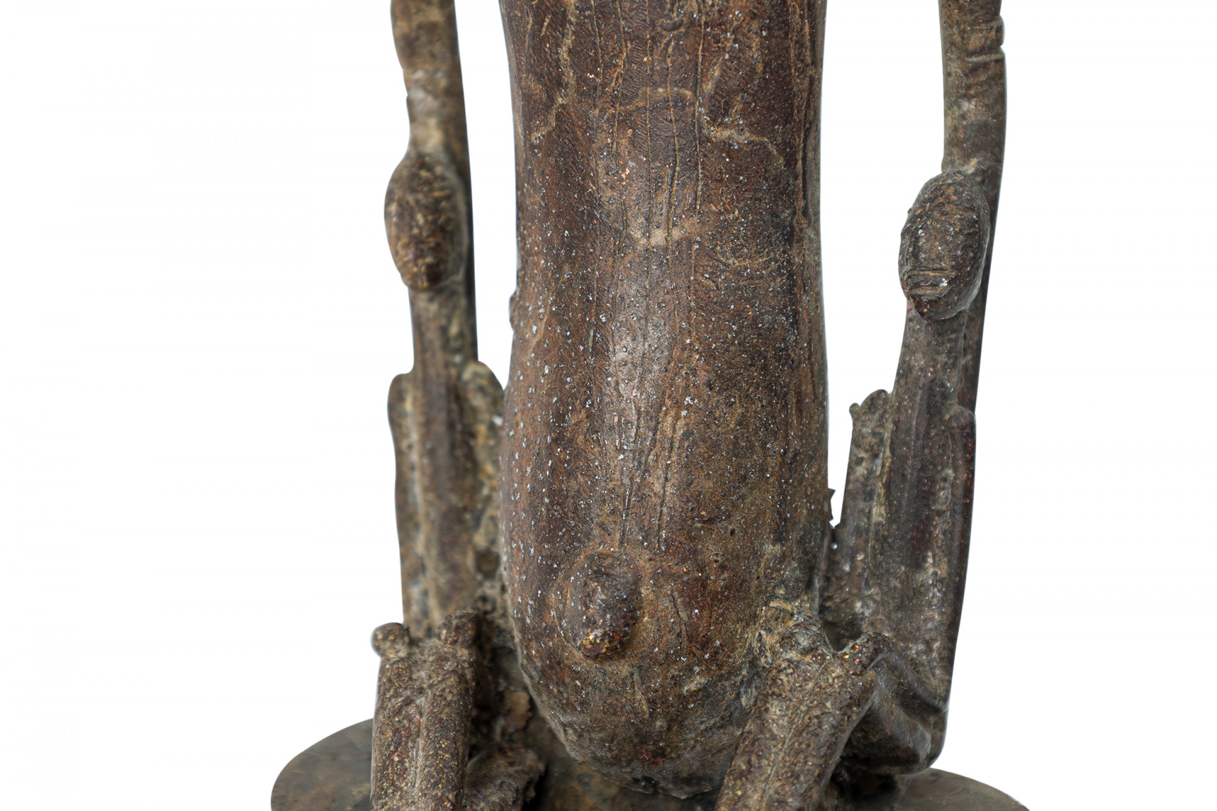 Style: Misc. Style Materials & Techniques: Bronze, metal Category: Cleared Sculpture Condition: female: 3.25" W x 3 D x 11.25" HT. Some losses on the male. Good; Minor losses