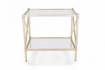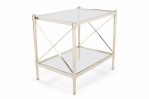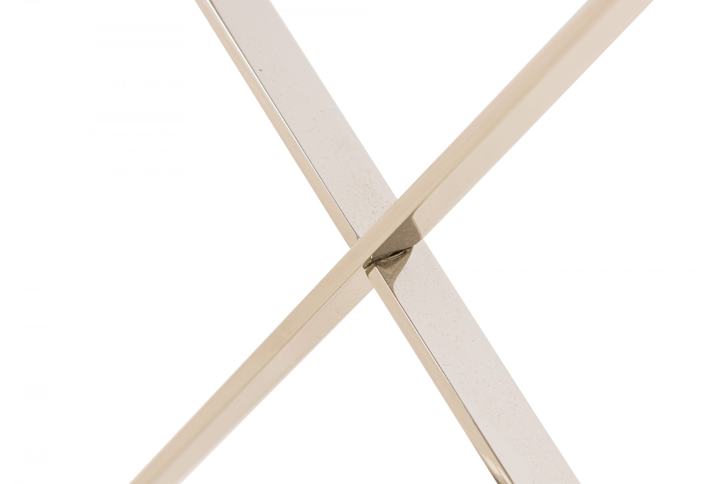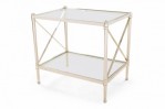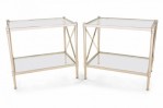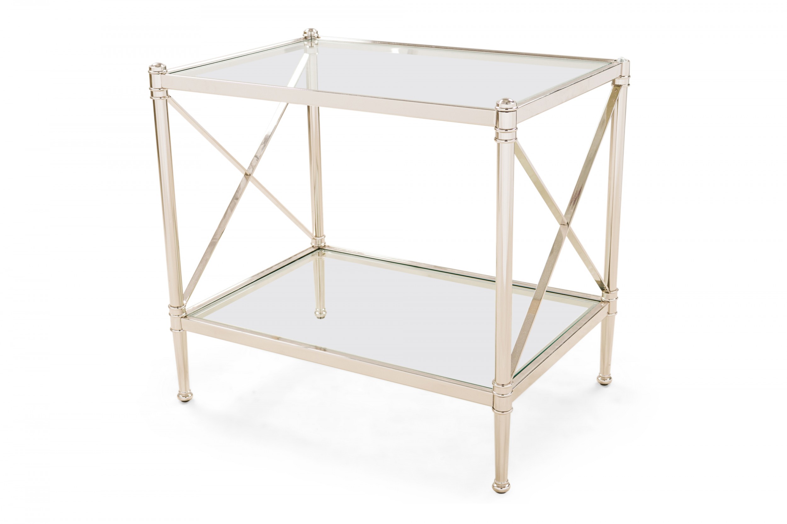 PAIR of American Mid-Century Neo-classic style chrome-plated metal rectangular end / side tables with inset glass top and bottom shelf having an "X" design sides (PRICED AS PAIR).