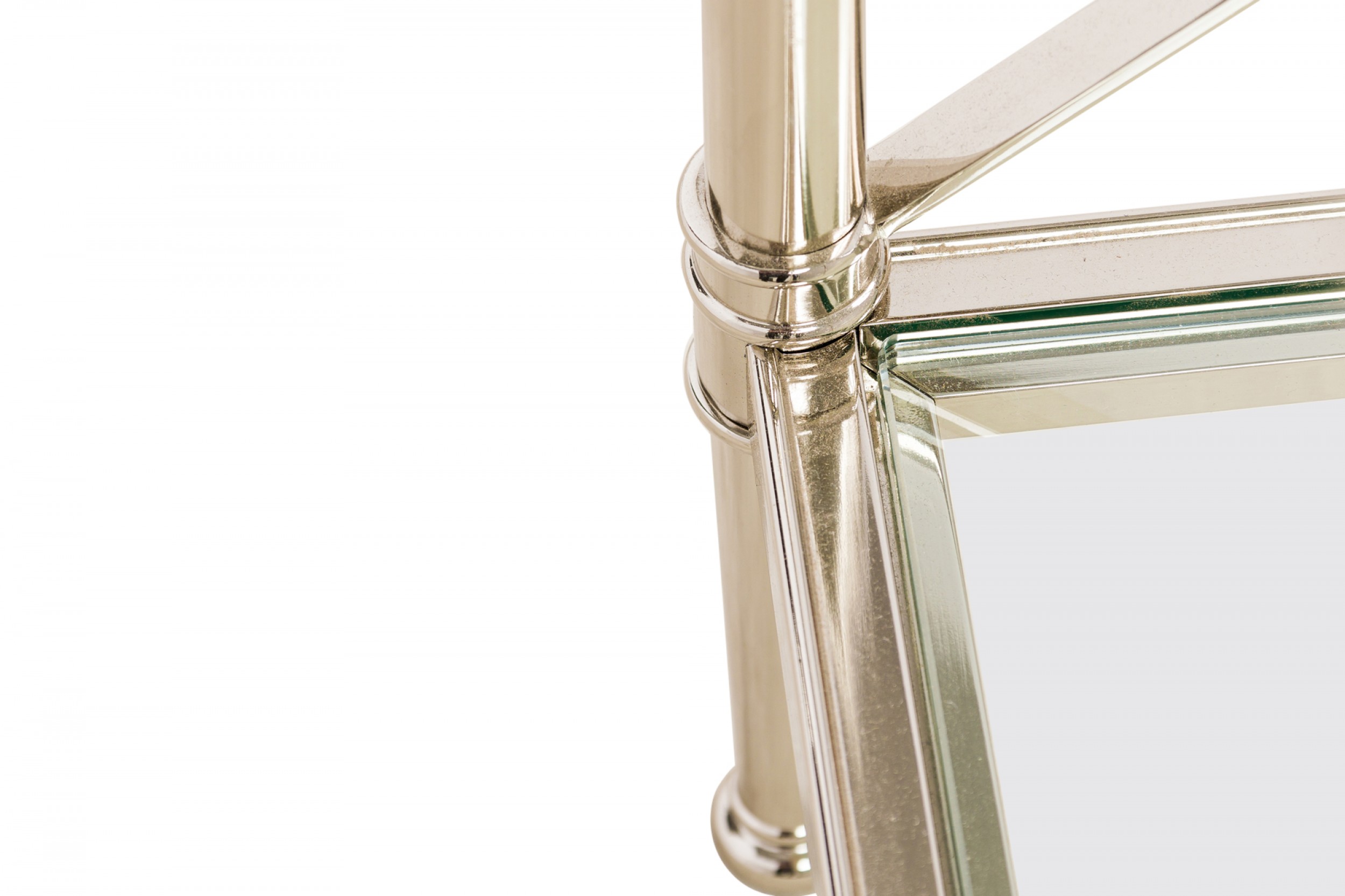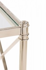 Pair of American Art Deco Style Silver Metal Rectangular End / Side Tables with Inlaid Glass Tops