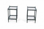 Pair of Contemporary Wooden Faux Metallic Painted End Tables With Glass Tops and Shelf