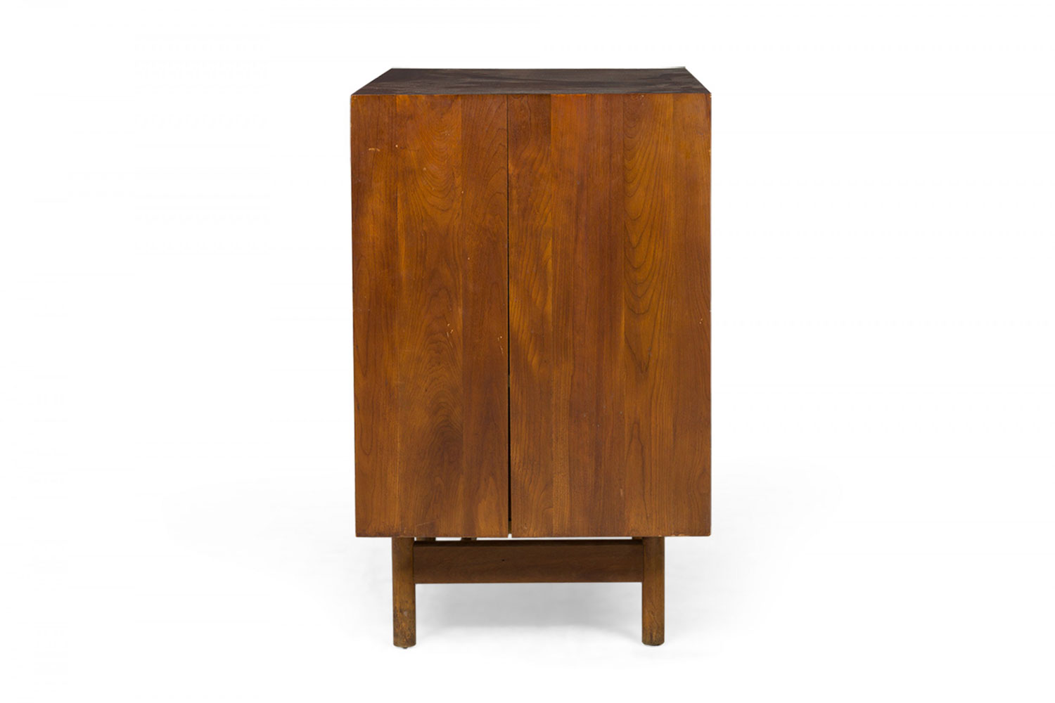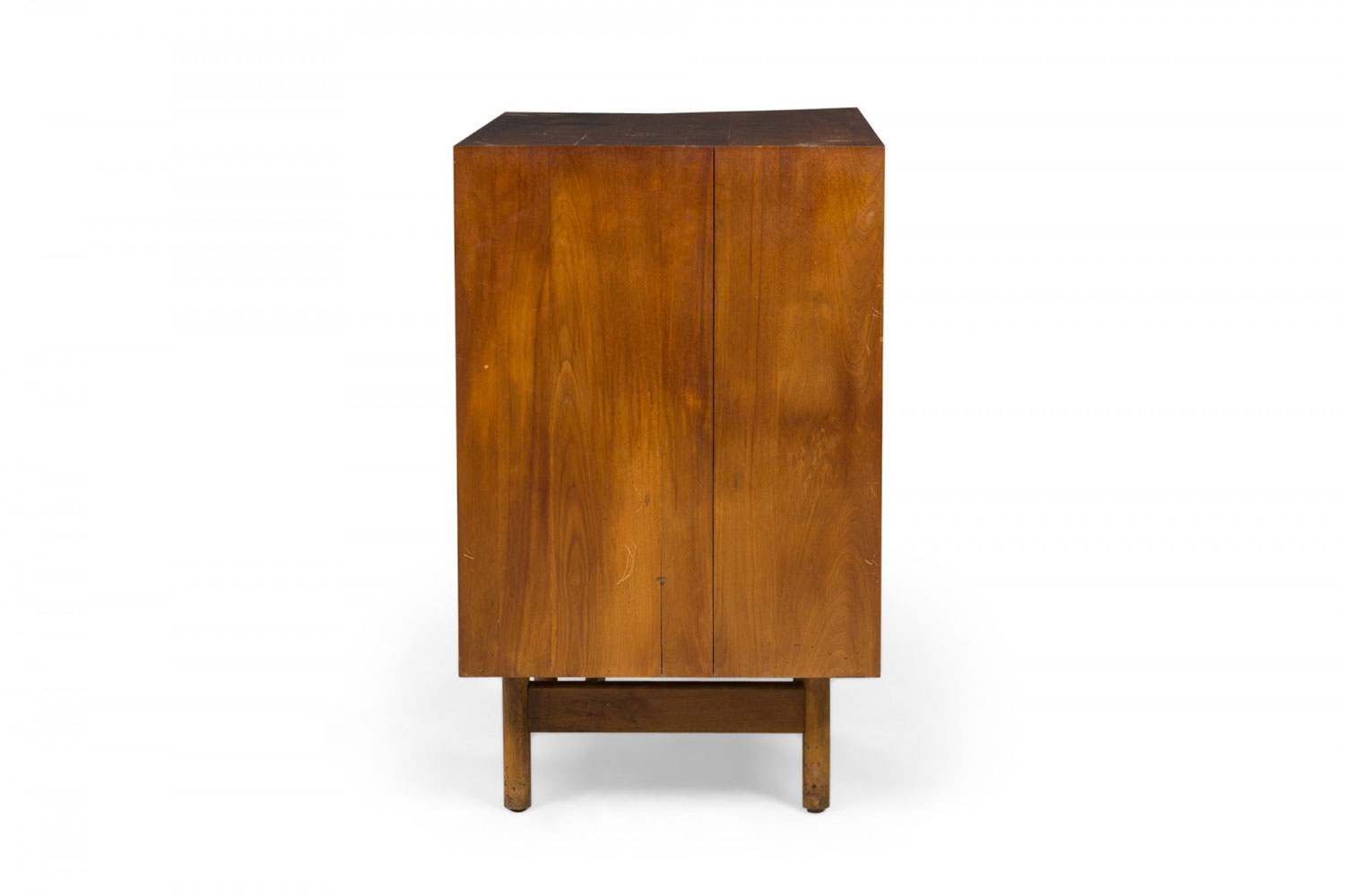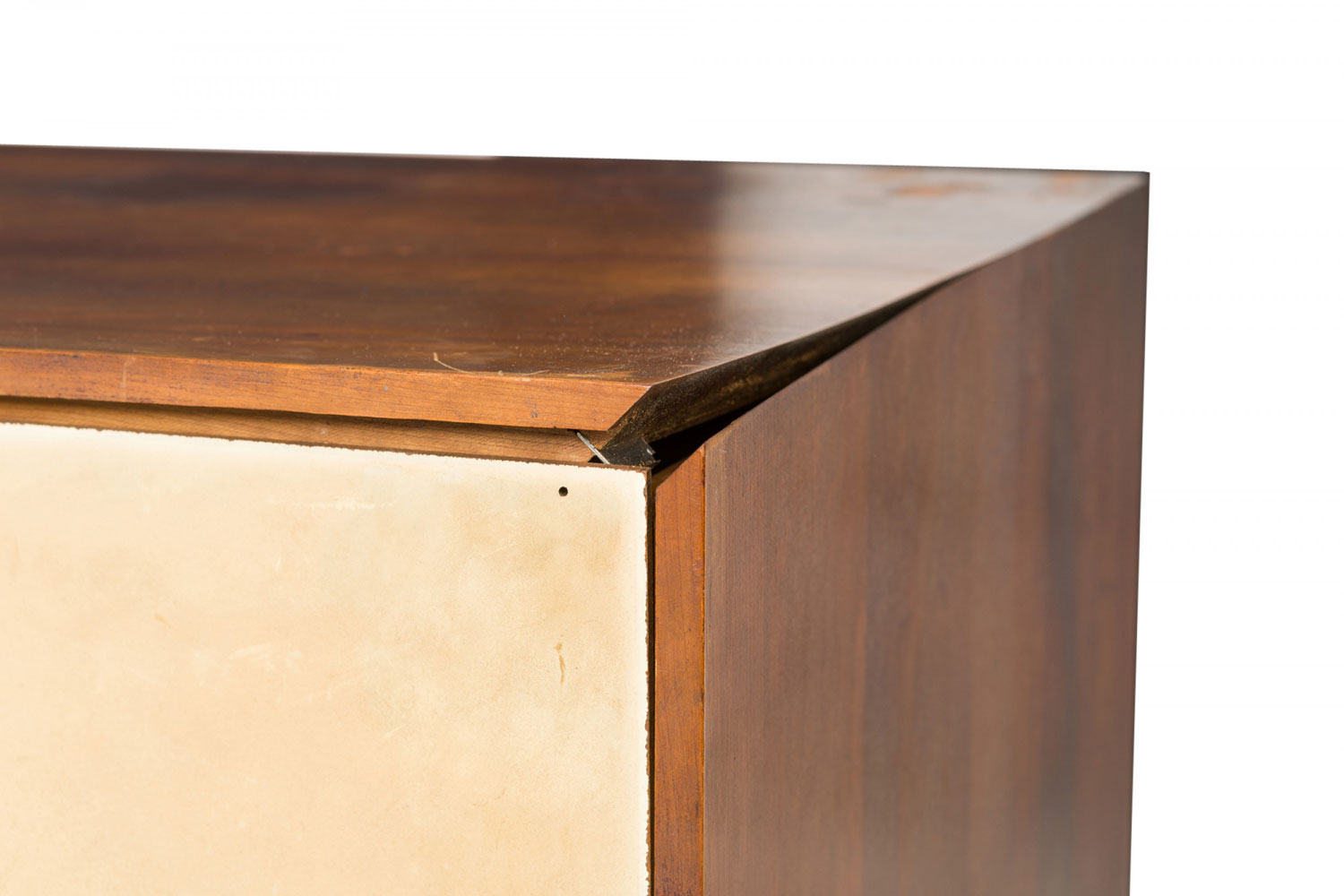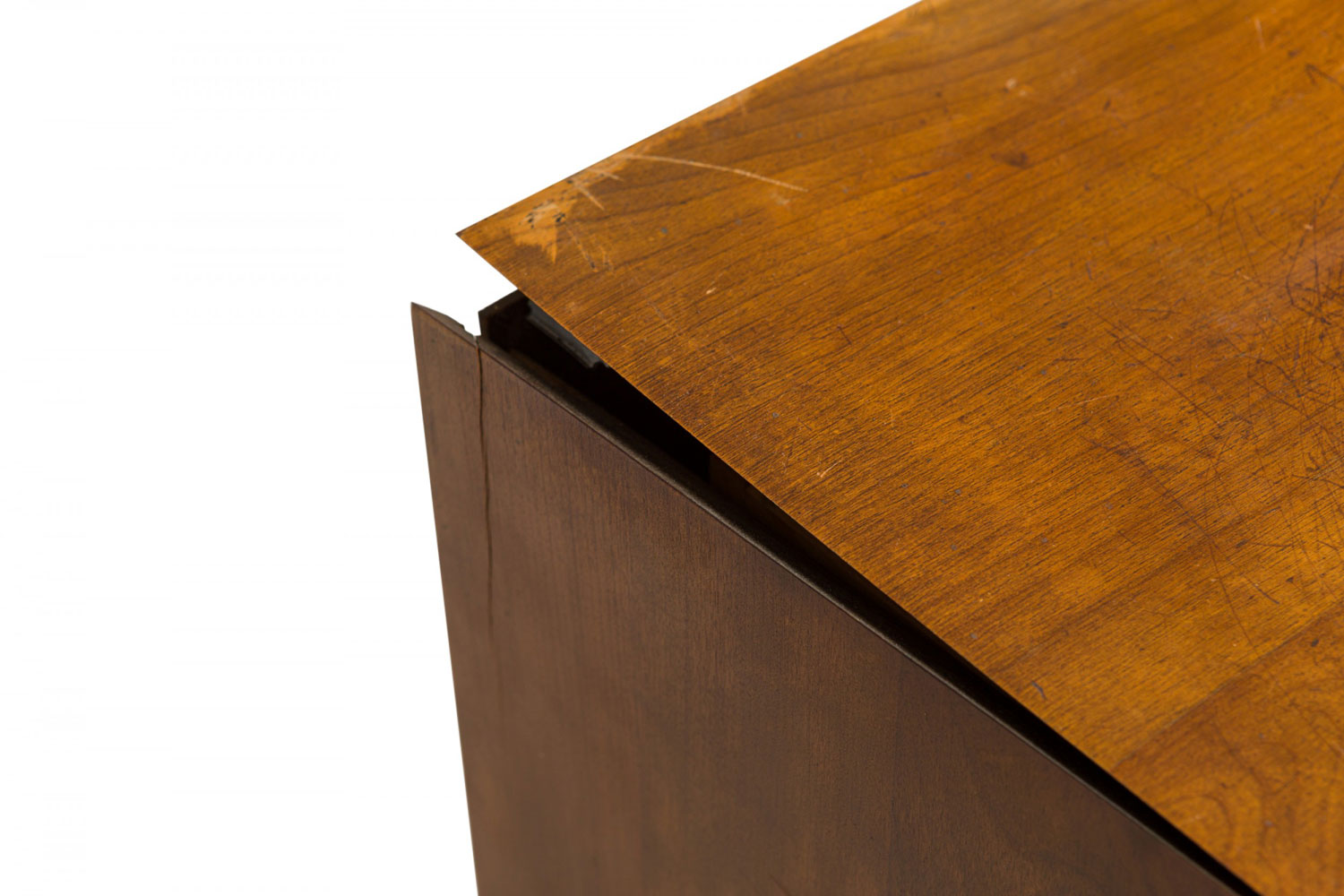 Style: Mid-Century Materials & Techniques: Chrome, metal, walnut, wood Category: Cabinets & Case Goods Condition: One piece is separating at the top joints. Good; Wear consistent with age and use