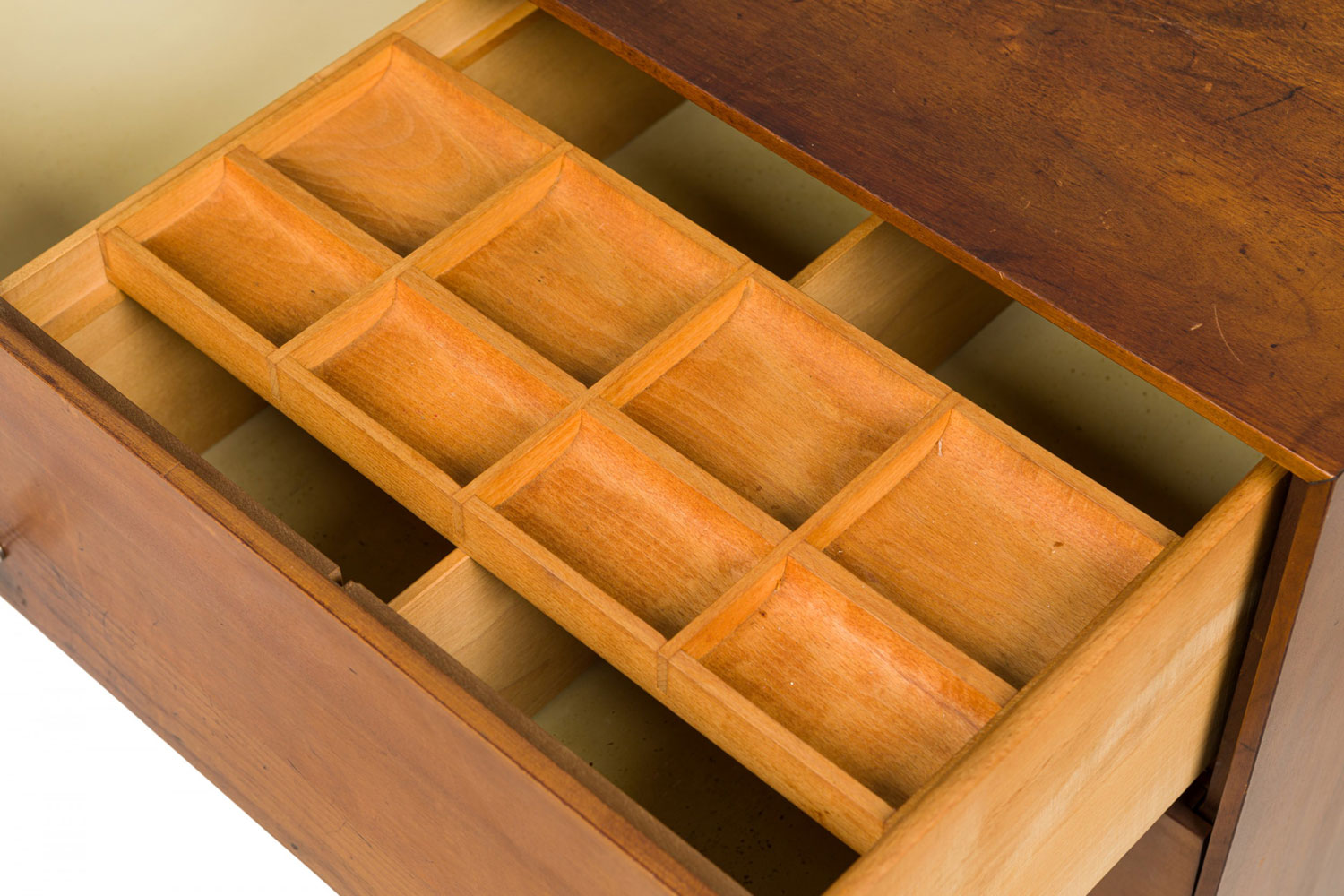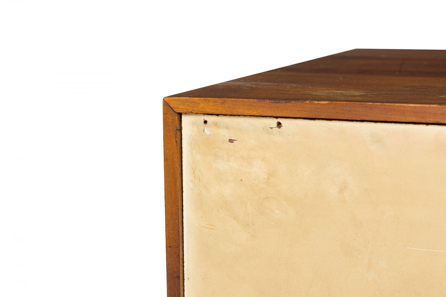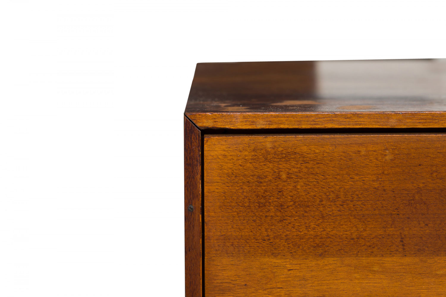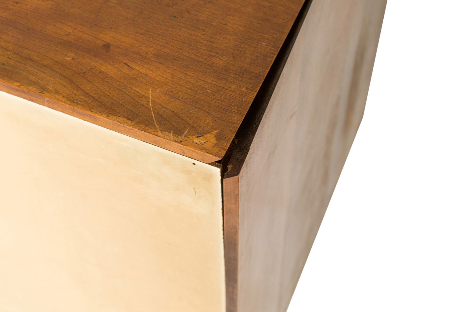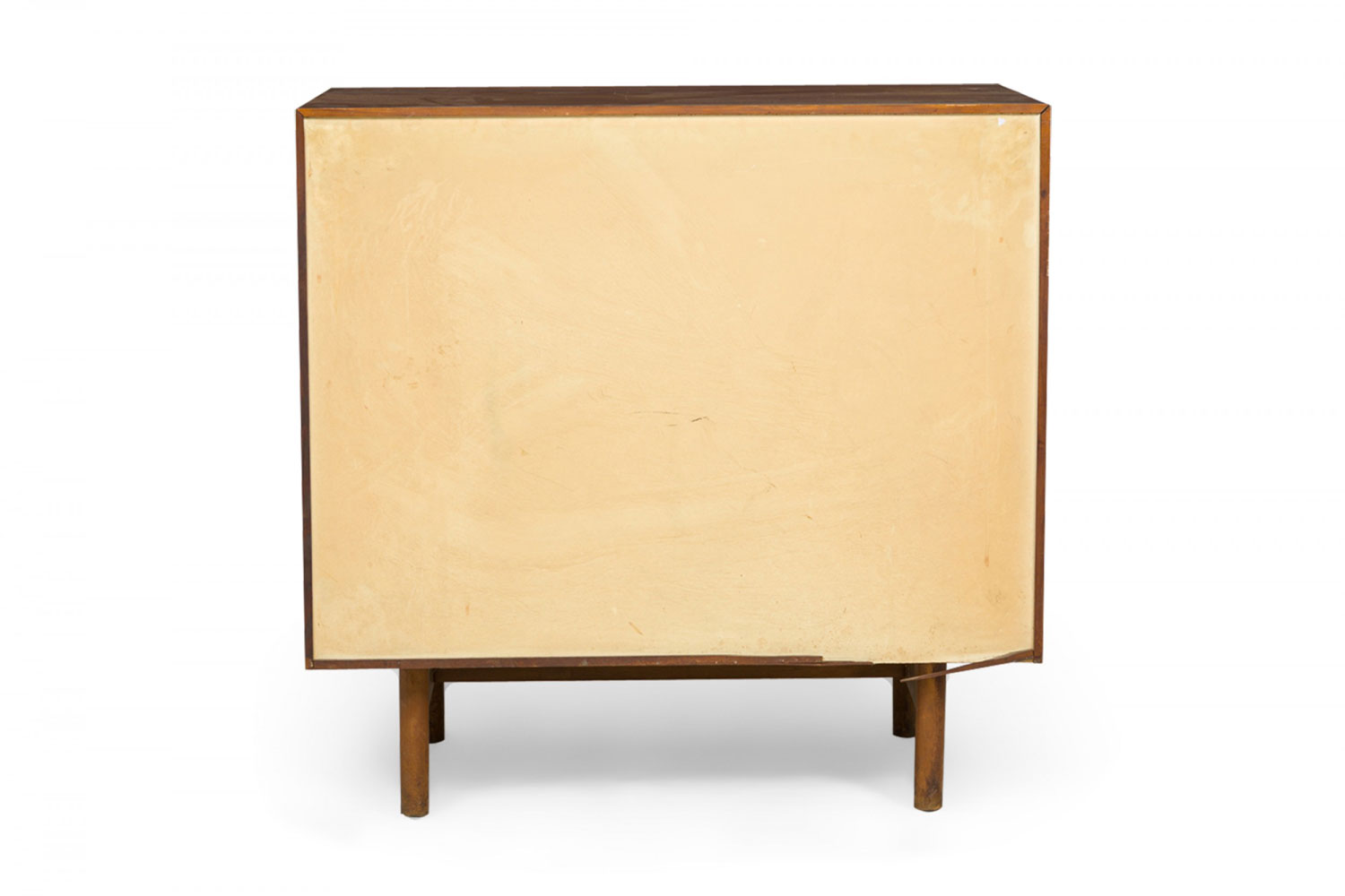 Style: Mid-Century Materials & Techniques: Chrome, metal, walnut, wood Category: Cabinets & Case Goods Condition: One piece is separating at the top joints. Good; Wear consistent with age and use