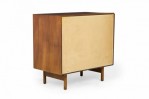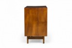 PAIR of American Mid-Century 3-drawer rectangular walnut chests with circular brushed chrome drawer pulls, resting on four dowel legs. (EDMOND SPENCE FOR WHITNEY FURNITURE CO.)(PRICED AS PAIR).