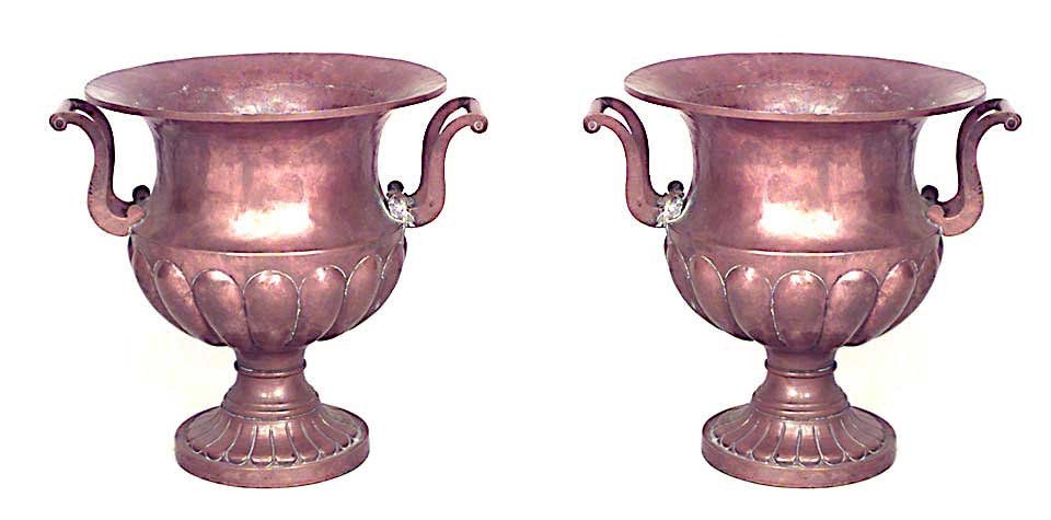 PAIR of English Georgian style copper urns with handles and fluted base (19/20th Cent.) (PRICED AS PAIR)