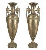 PAIR of English Georgian style tall silver plated vases with handles and festoon design and wreath base (19/20th Cent.) (PRICED AS PAIR).