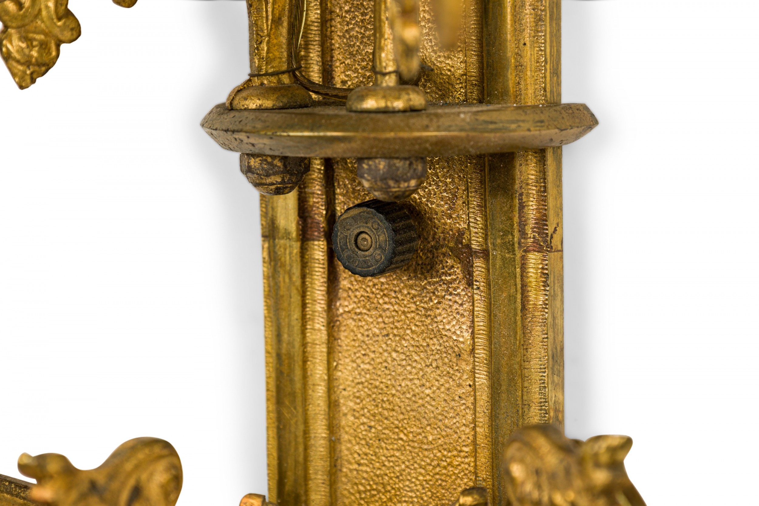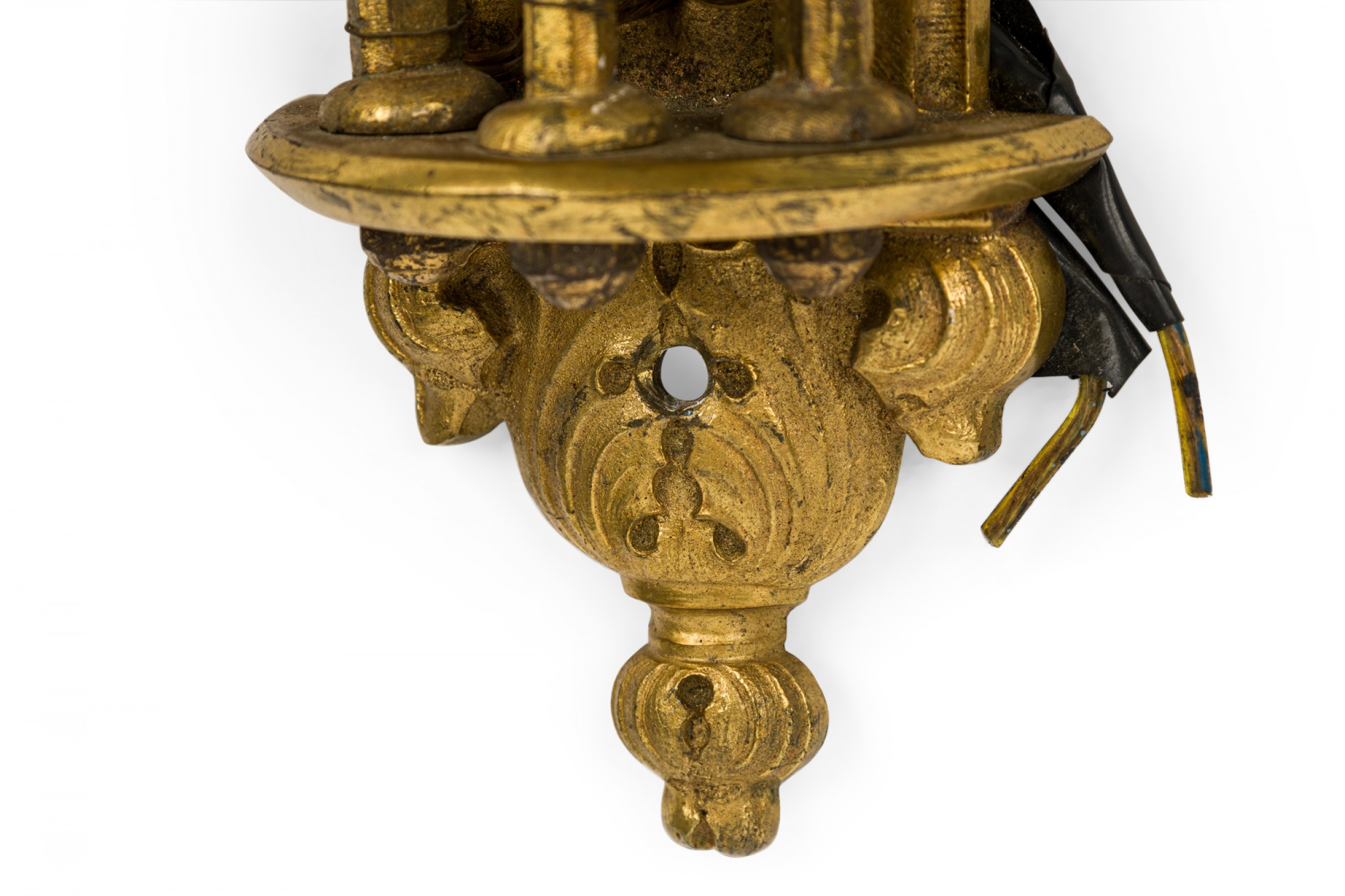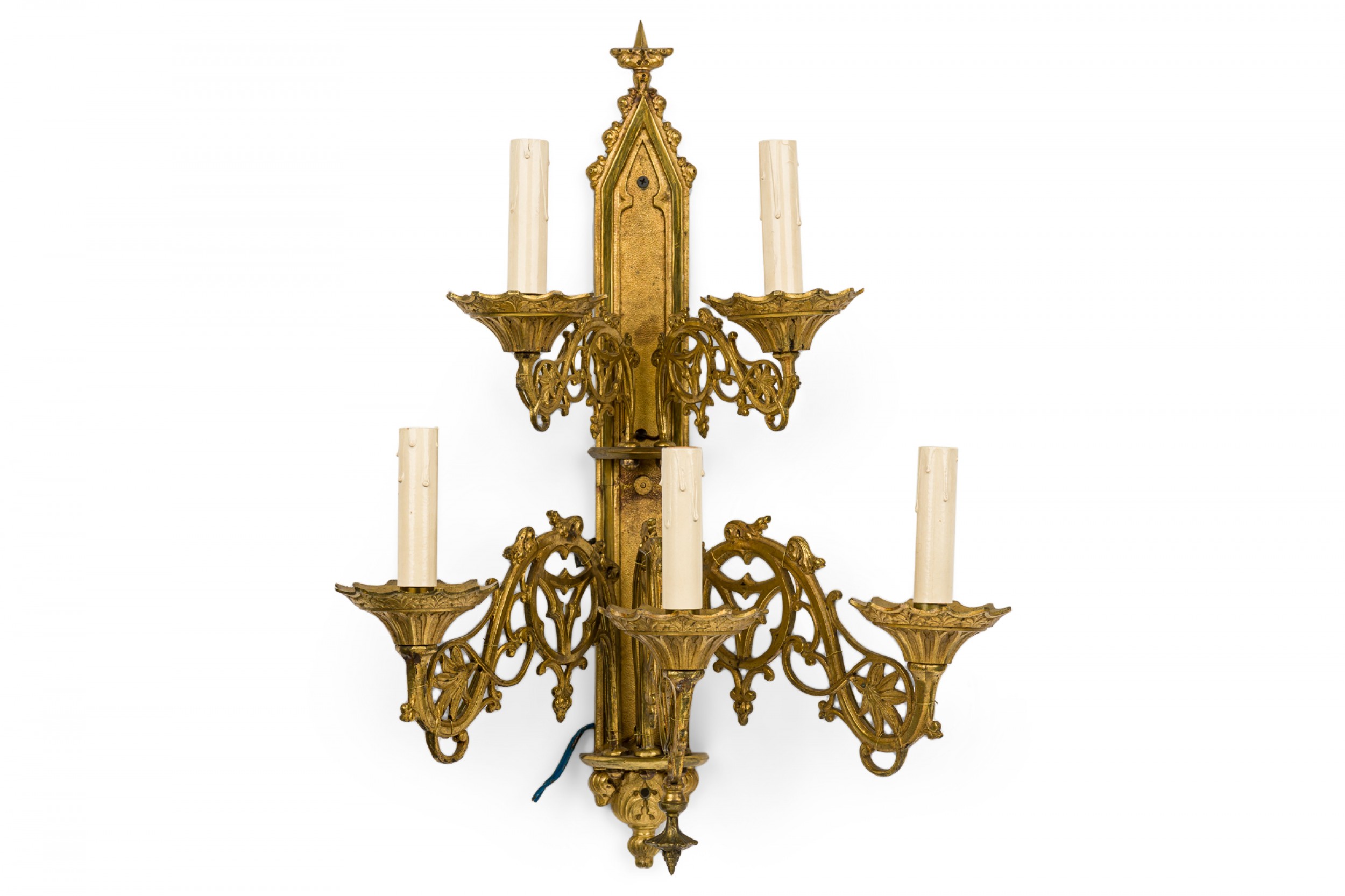 PAIR of French Gothic stye gilt bronze 2-tier 5 arm wall sconces featuring floral and foliage motifs