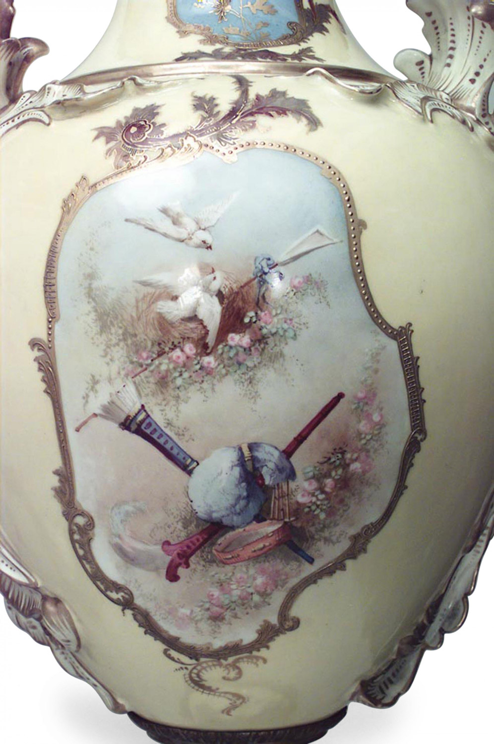 Pair of French Victorian Yellow Sevres Porcelain Vases