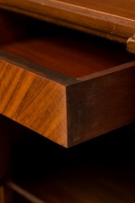 Style: French Materials & Techniques: Bronze, metal, veneer, wood Category: Tables, Bedroom Condition: Some chips, scuffs, and scratches consistent with age and use. Good; Wear consistent with age and use