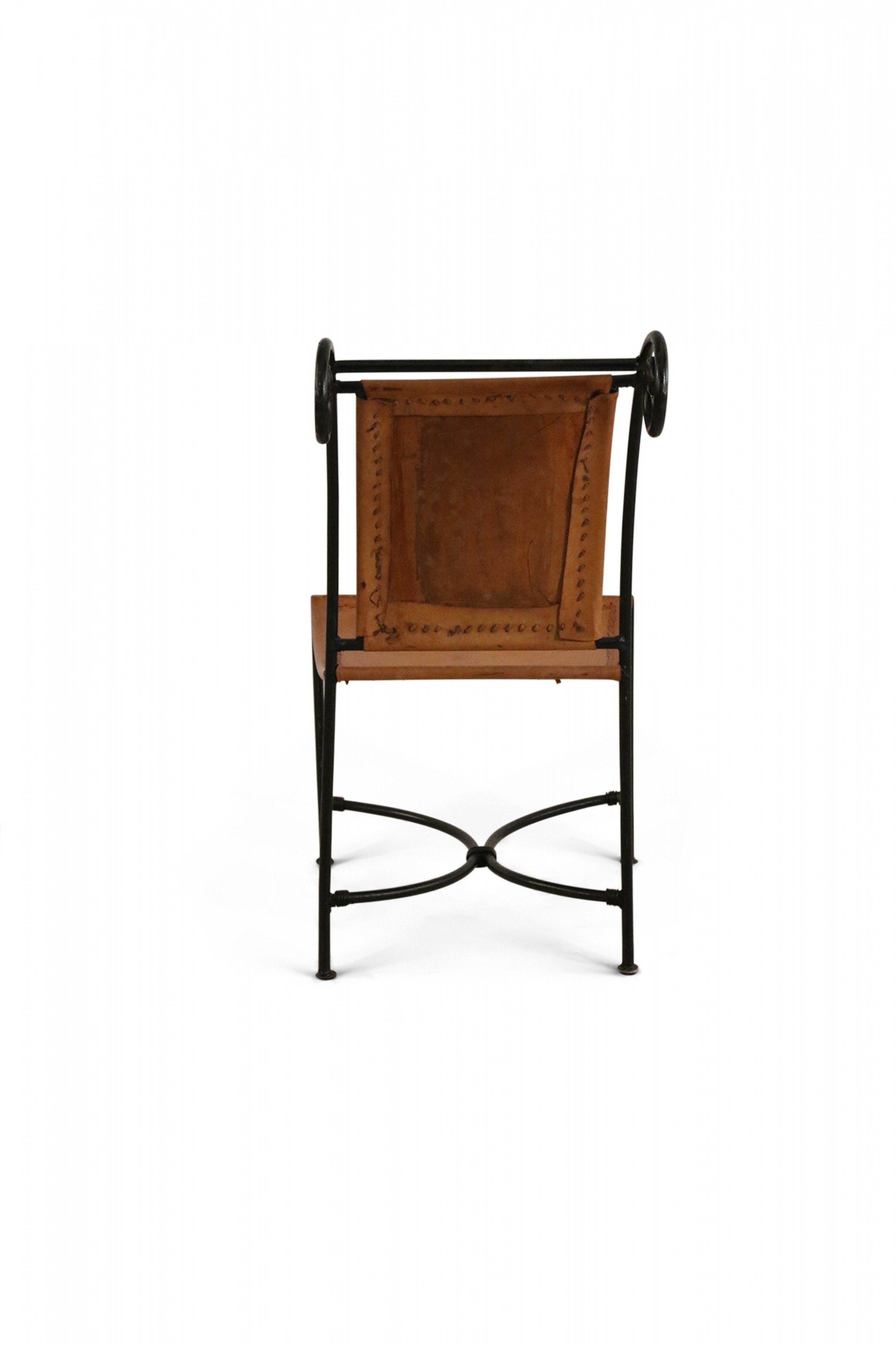 Pair of Mid-Century Wrought Iron and Leather Side Chairs