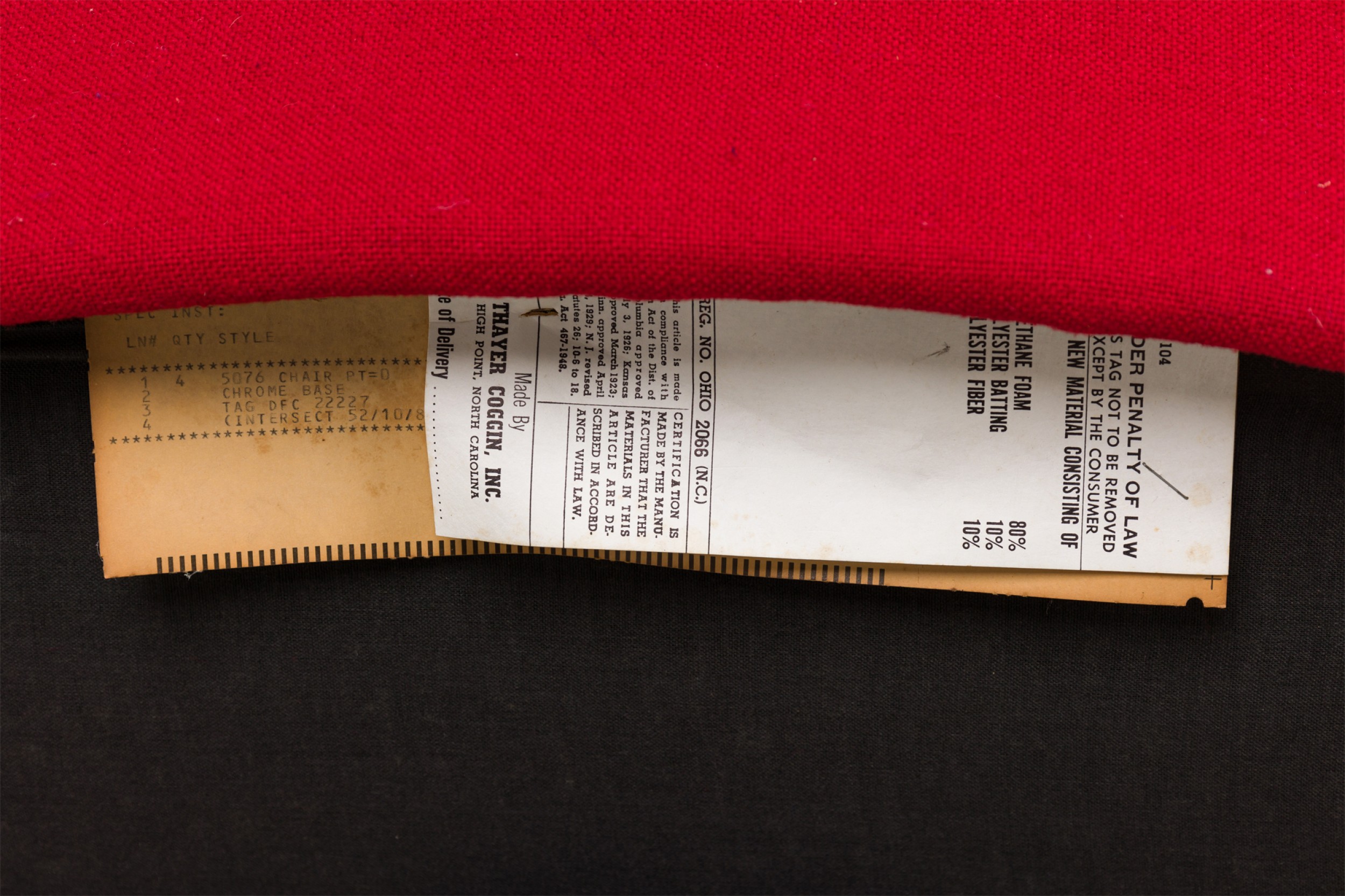 Style: Mid-Century Materials & Techniques: Chrome, fabric, metal, upholstered Category: Seating, Office/Library Good; Wear consistent with age and use