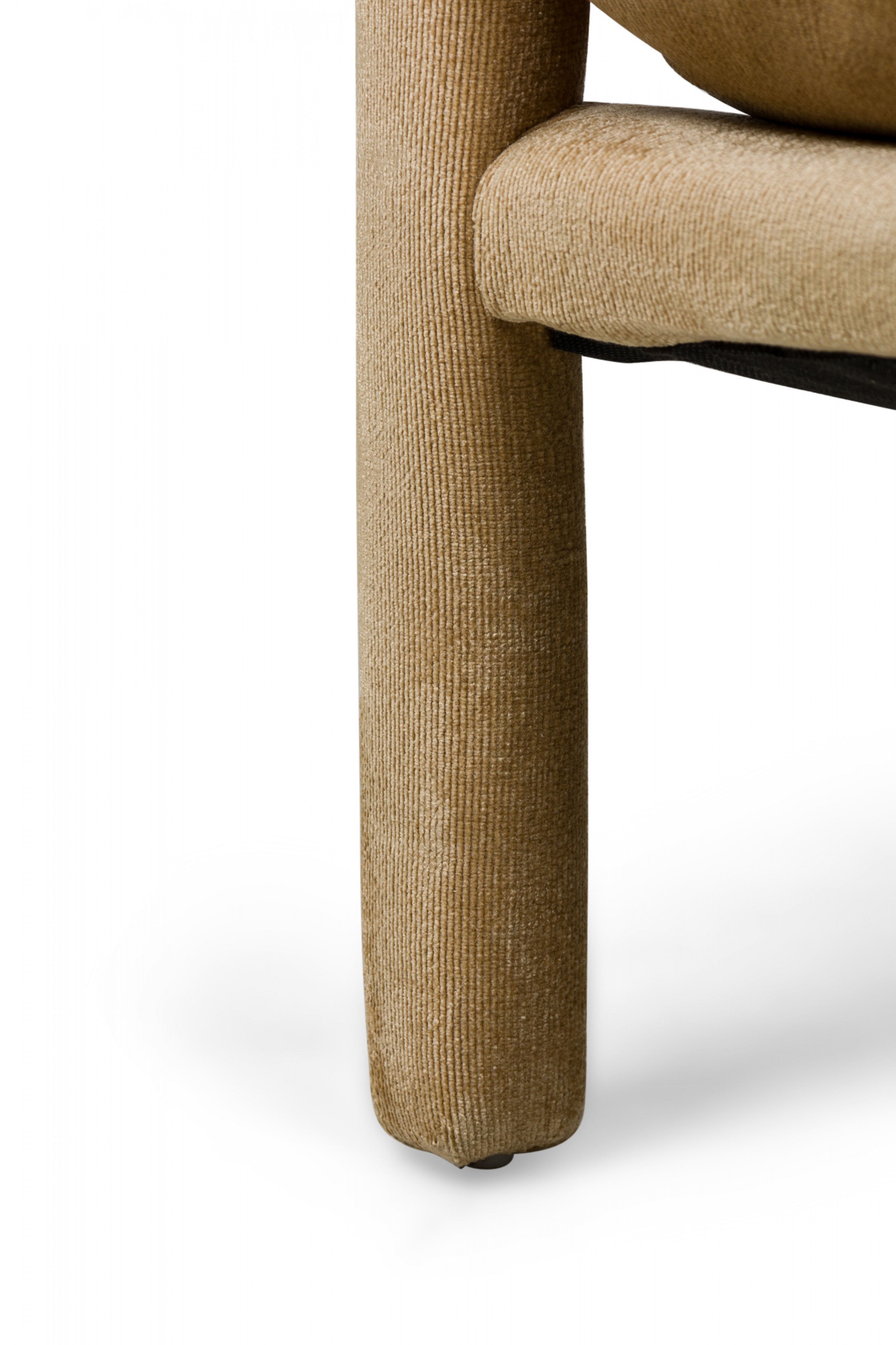 PAIR of Mid-Century American Modern upholstered frame arm chairs with a tufted back and seat cushion (MILO BAUGHMAN) (PRICED AS PAIR).