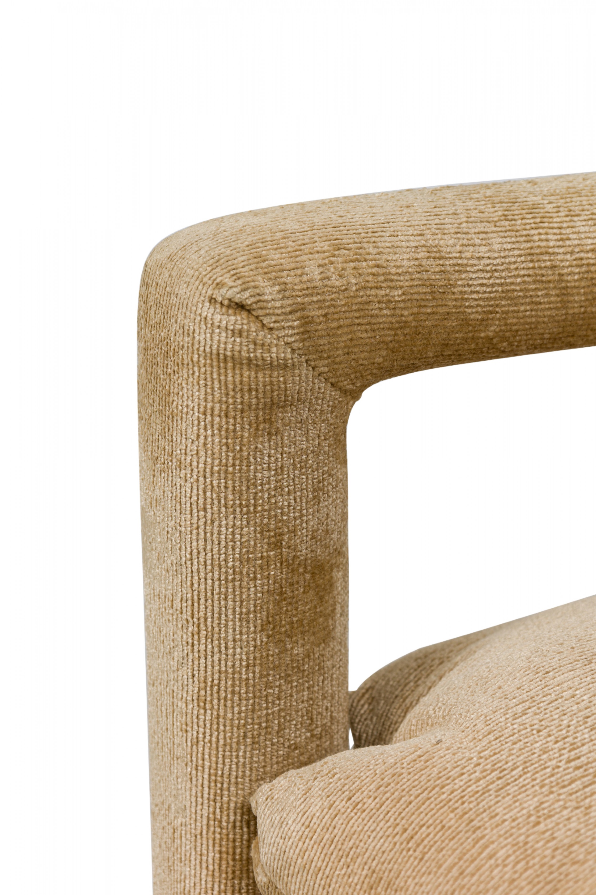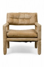 PAIR of Mid-Century American Modern upholstered frame arm chairs with a tufted back and seat cushion (MILO BAUGHMAN) (PRICED AS PAIR)