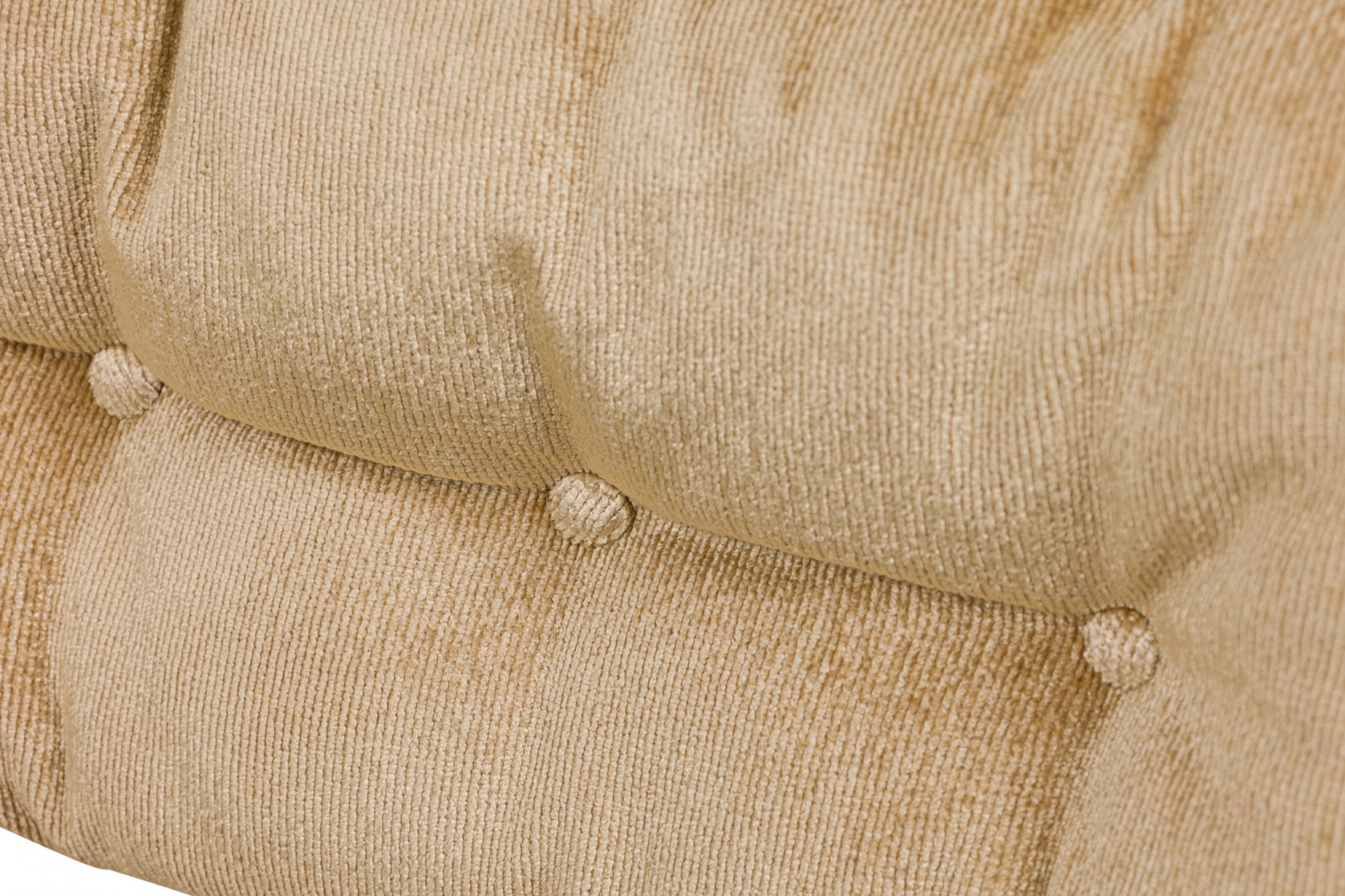 Style: Mid-Century Materials & Techniques: Fabric, tufted, upholstered Category: Seating Condition: Wear & tear on upholstery bottoms Good; Wear consistent with age and use