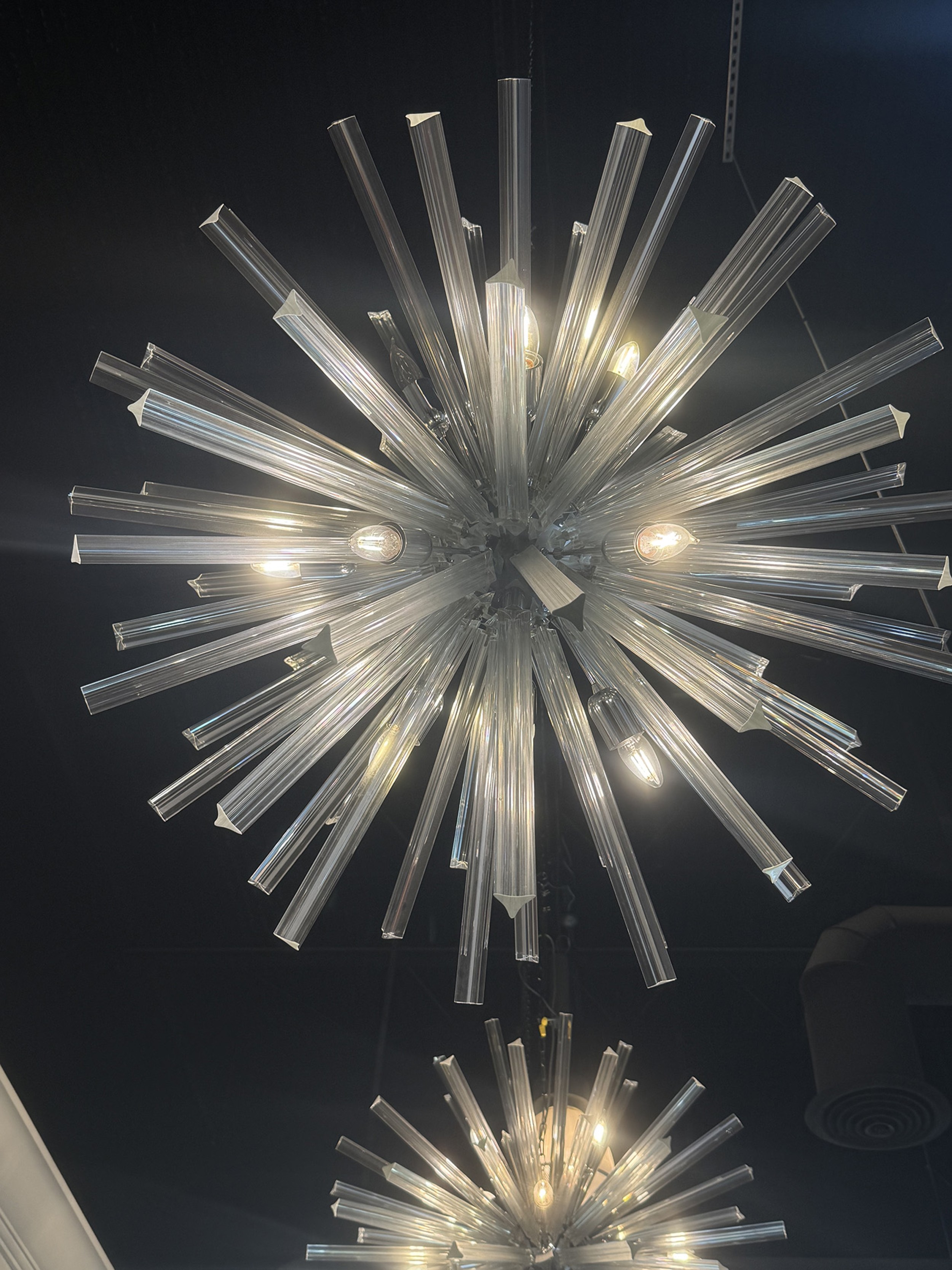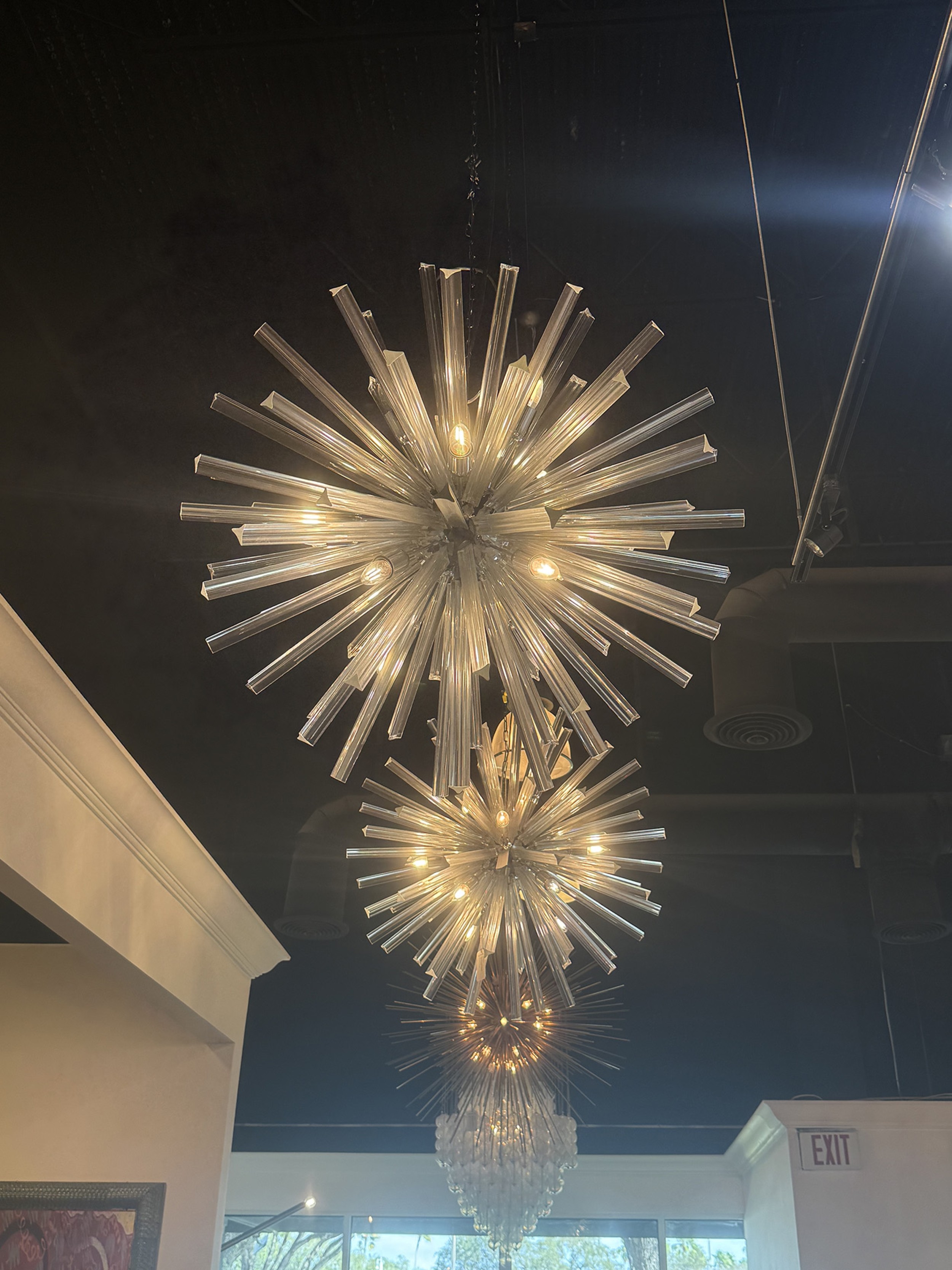 Pair of Monumental Glass and Polished Chrome Chandeliers, Venini for Camer Priced as pair.