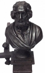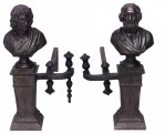 PAIR of Italian Neo-classic-style (19th Century) bronze andirons of busts of Homer and Virgil on etched pedestal bases (PRICED AS PAIR).