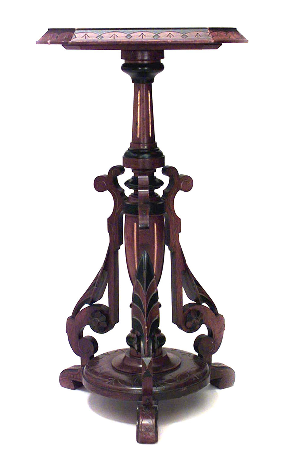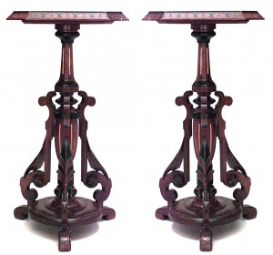 PAIR of American Victorian Eastlake walnut pedestals with ebonized and gilt trim and centerpost.