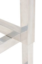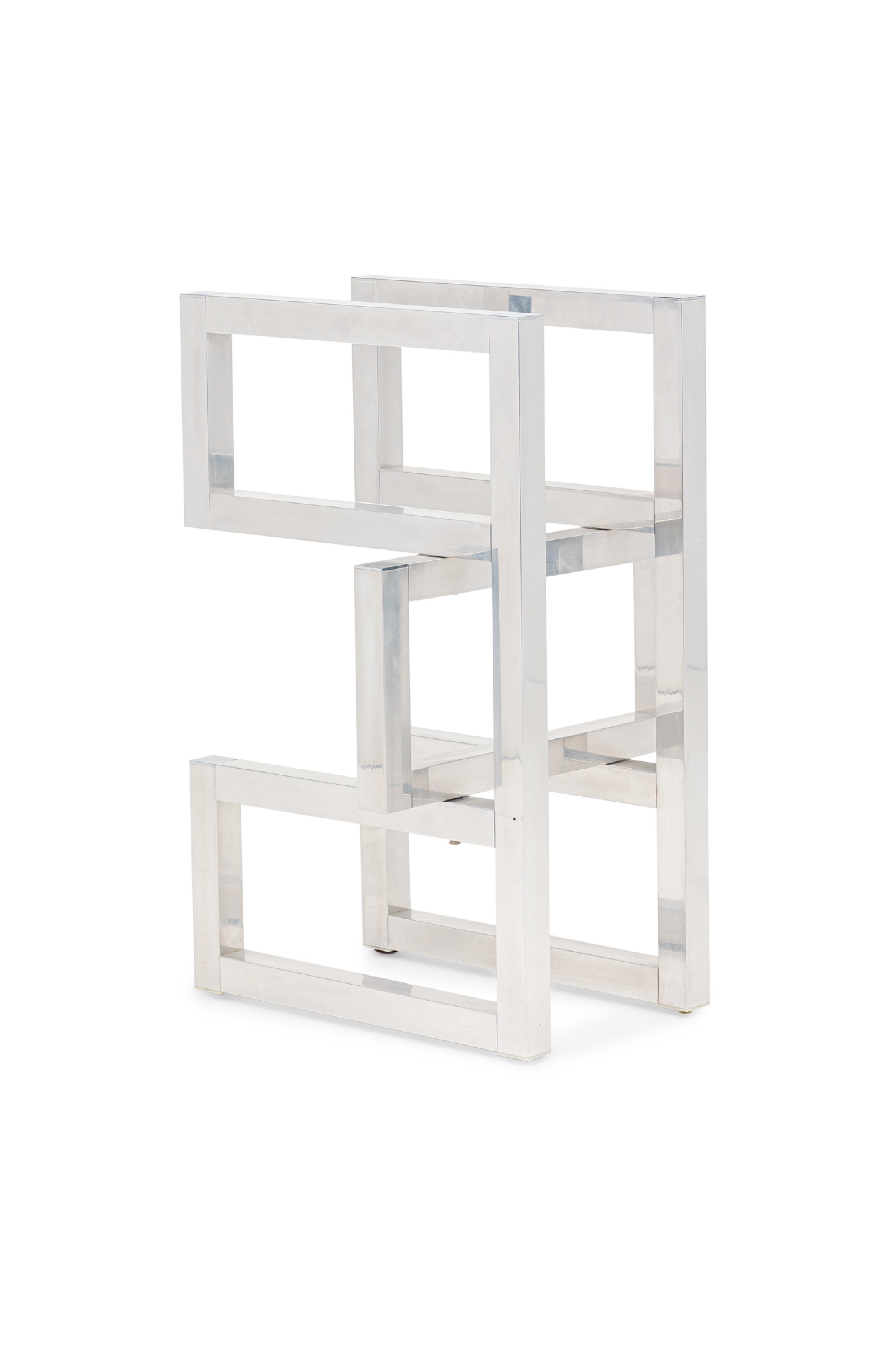 ***MISSING GLASS TOP*** Mid-Century American Modern chrome reticulated console table having a pair of bases in trapezoidal form. (PAUL MAYEN).