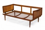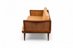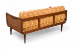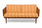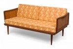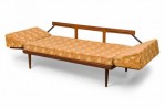 Peter Hvidt Danish Mid-Century Wooden Frame Caned Gold Patterned Upholstered Sleeper Settee