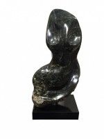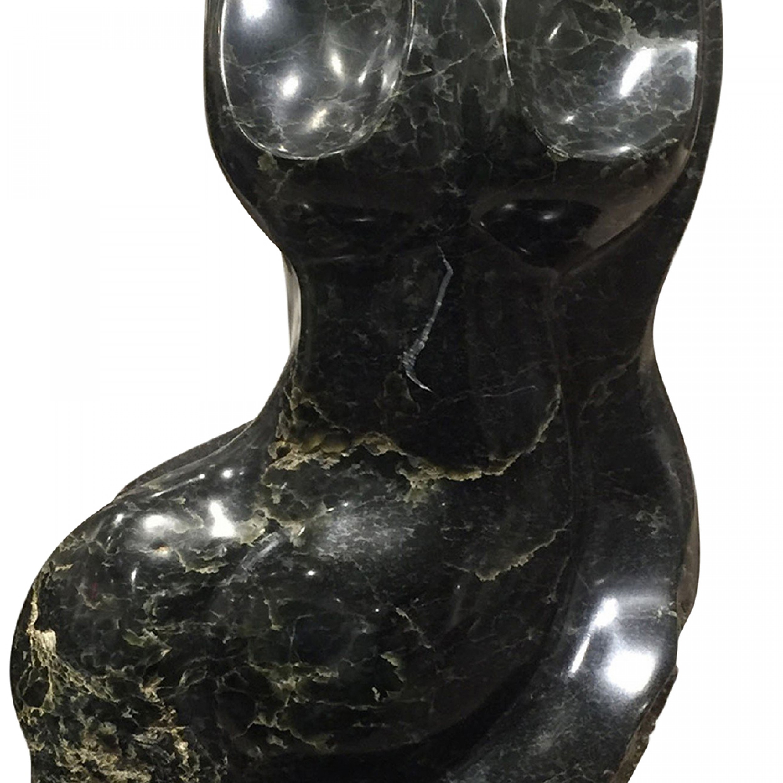 American Post-War Design carved green marble stylized torso of a figure resting on a rectangular black base