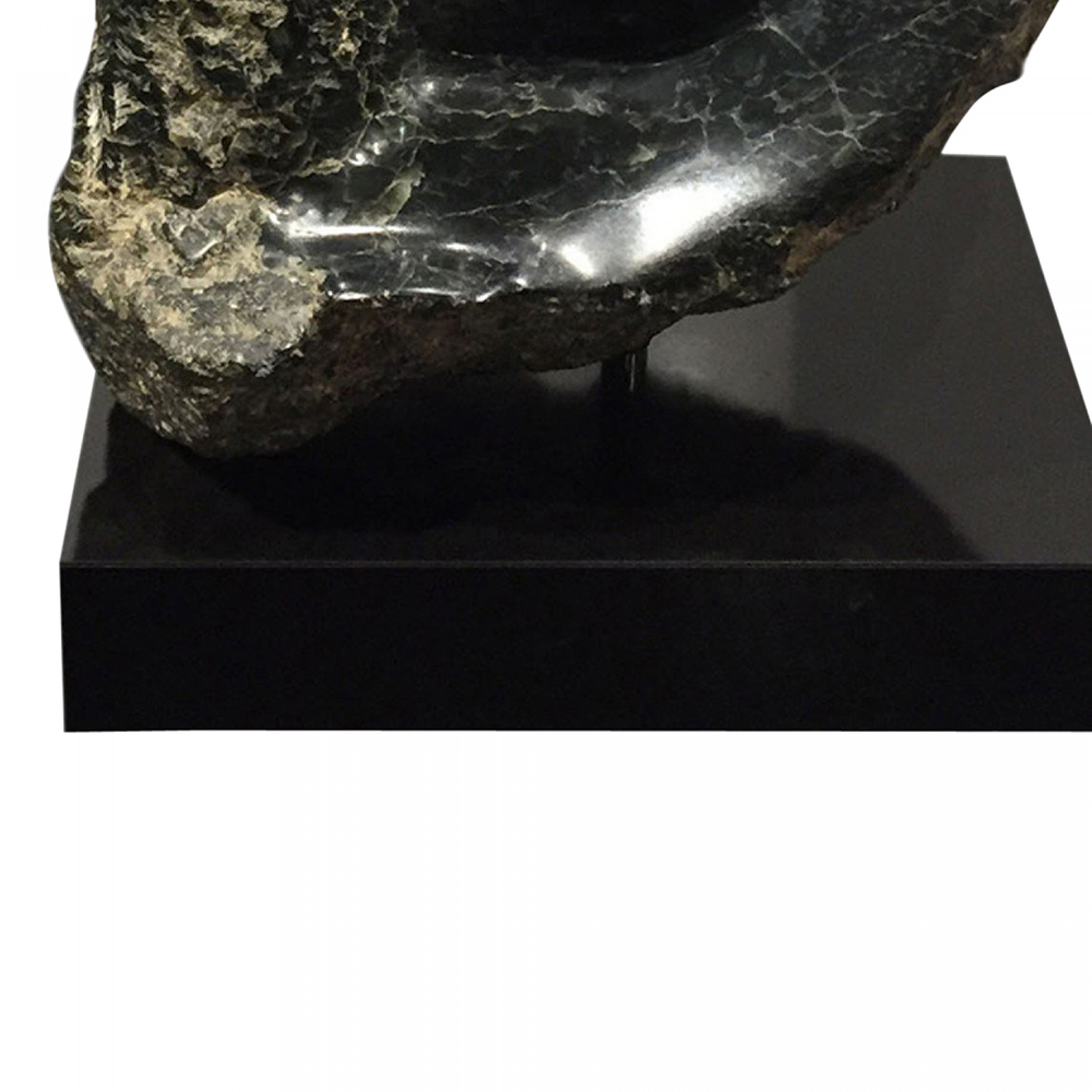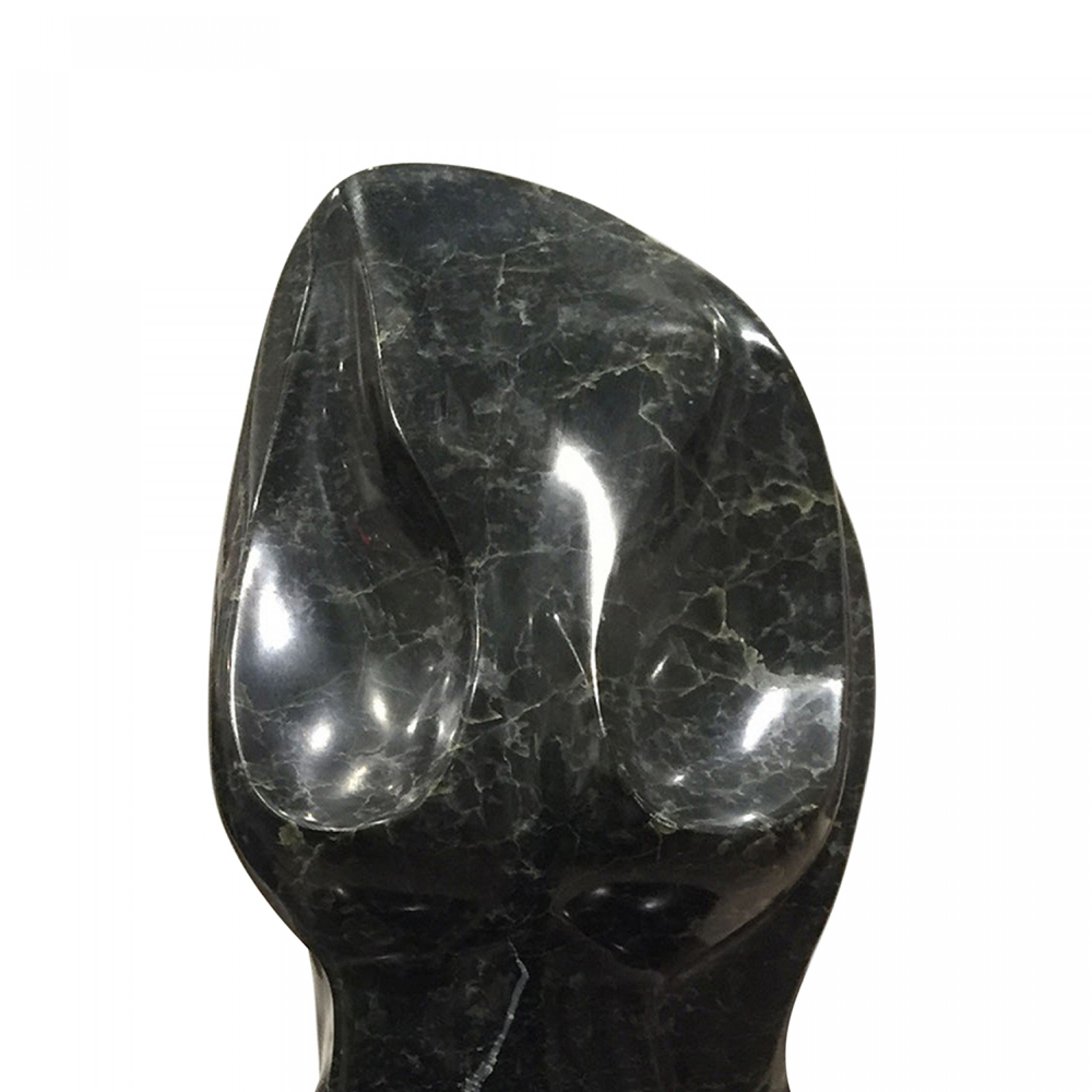 American Post-War Design carved green marble stylized torso of a figure resting on a rectangular black base.