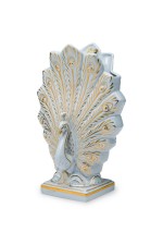American Mid-Century white porcelain and gilt trim peacock vase on a square pedastal base (PRINCETON CHINA).