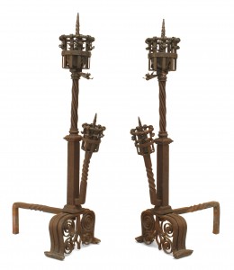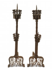 Pair of Samuel Yellin Italian Renaissance Wrought Iron Andirons