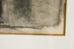 Contemporary American charcoal features study of one figure, primarily a sculptor contemplatIng on his sculptures that represent a column like figure with a design element and a human femur simultaneously in a gold frame (Signed recto: MAJOROWICZ)