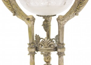 Russian Neo-classic-style (19th Century) silver plated 3 arm candelabra centerpiece with crystal bowl and eagle mascots.