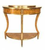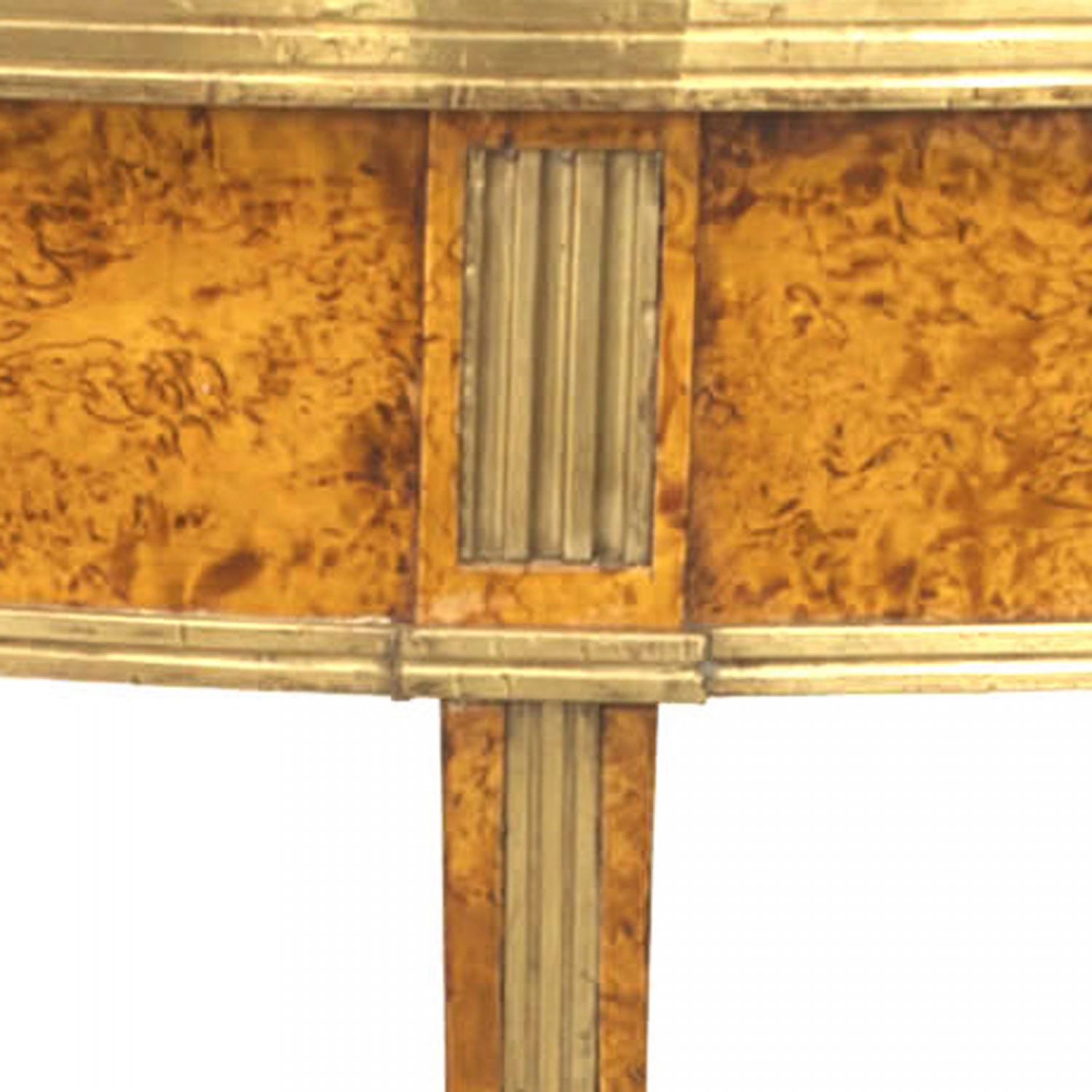 Russian Neoclassic Birch and Brass Demilune Console Table