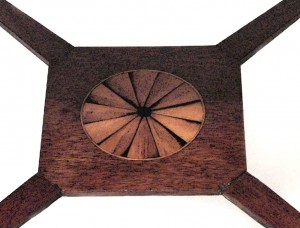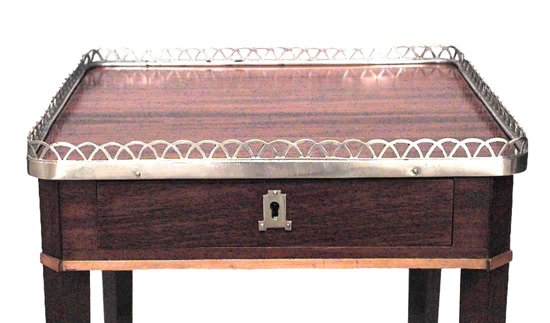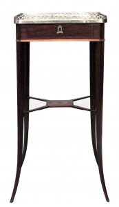 Style: Russian Materials & Techniques: Brass, mahogany, inlaid, splayed Category: Tables