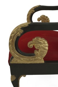 Style: Russian Materials & Techniques: Upholstered, wood, giltwood, silk, painted Category: Seating Condition: Shows wear and tear.