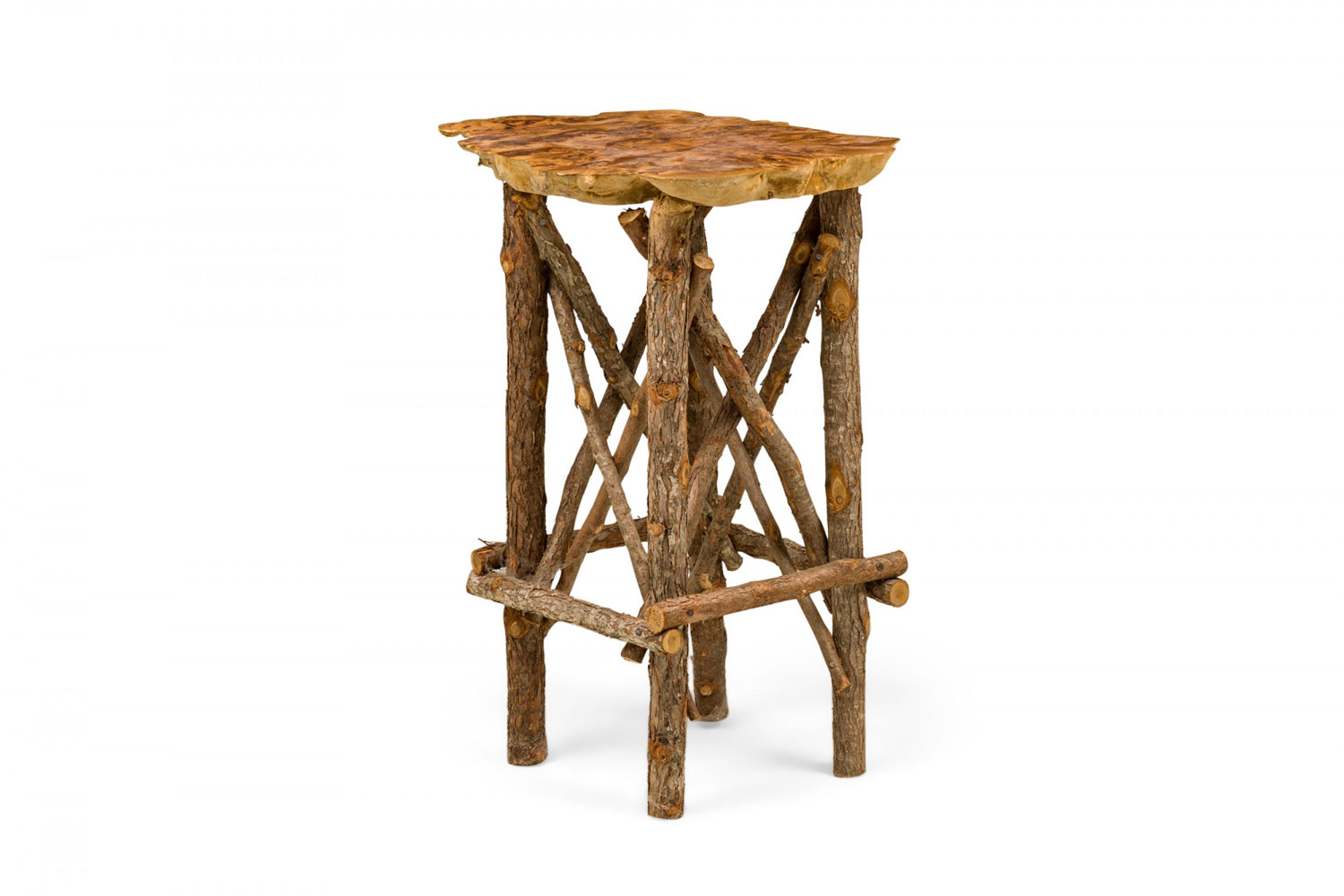 Style: Rustic Materials & Techniques: Twig, wood Category: Tables, Rustic Good; Wear consistent with age and use
