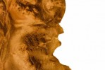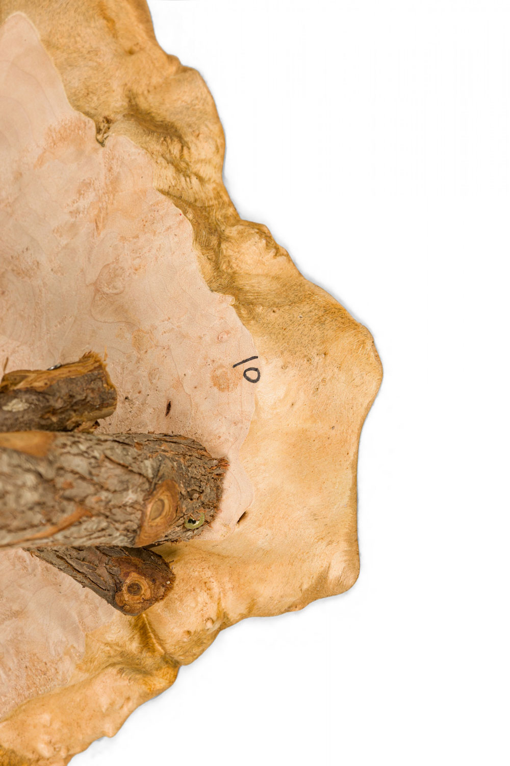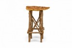 Contemporary Rustic Adirondack end / side table with a petrified wood top with organically scalloped edges supported on a branch base with x-stretchers. (Similar tables: 063374, 063375)