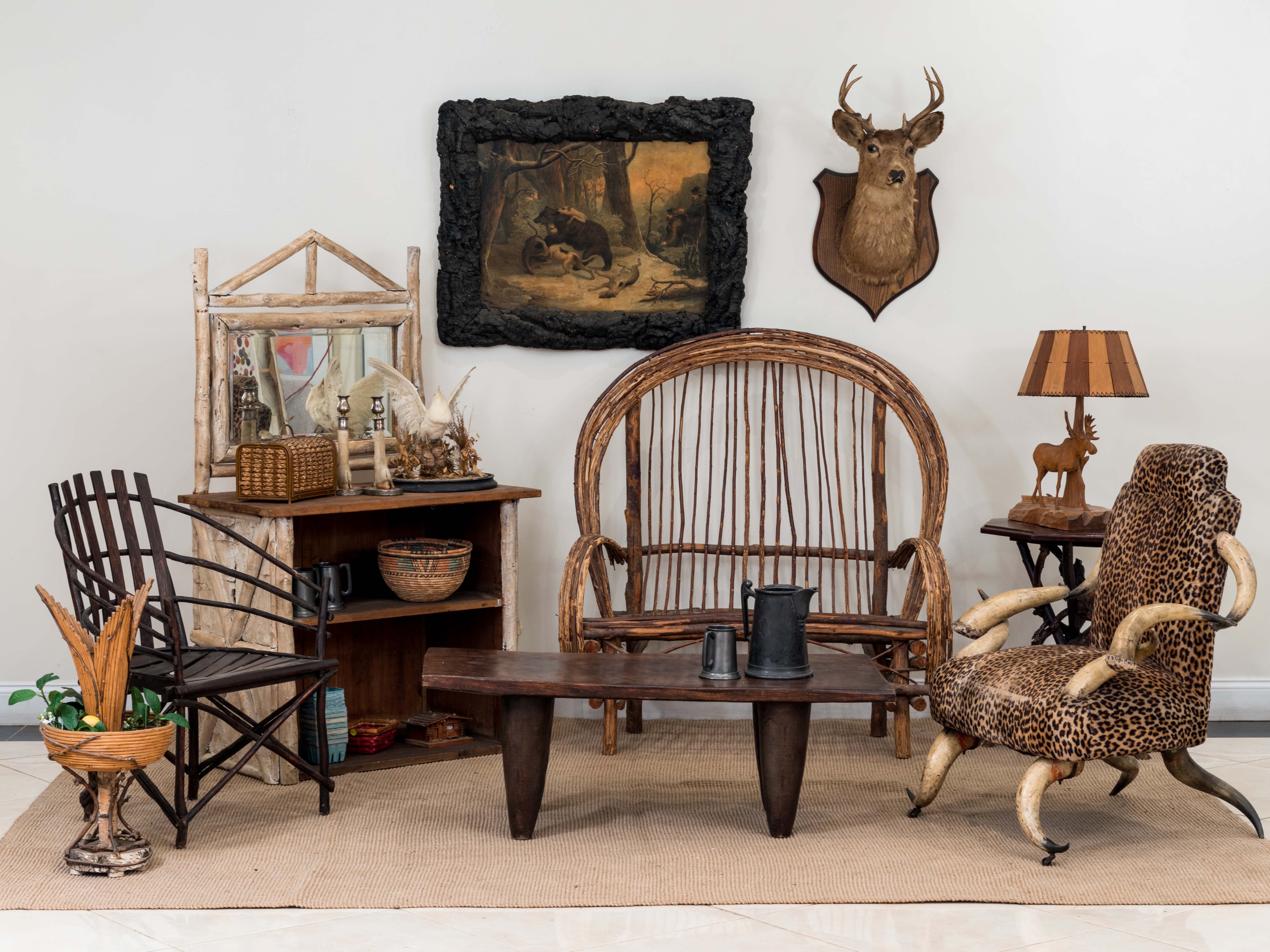 Style: Rustic Materials & Techniques: Iron, slat, willow Category: Seating, Rustic