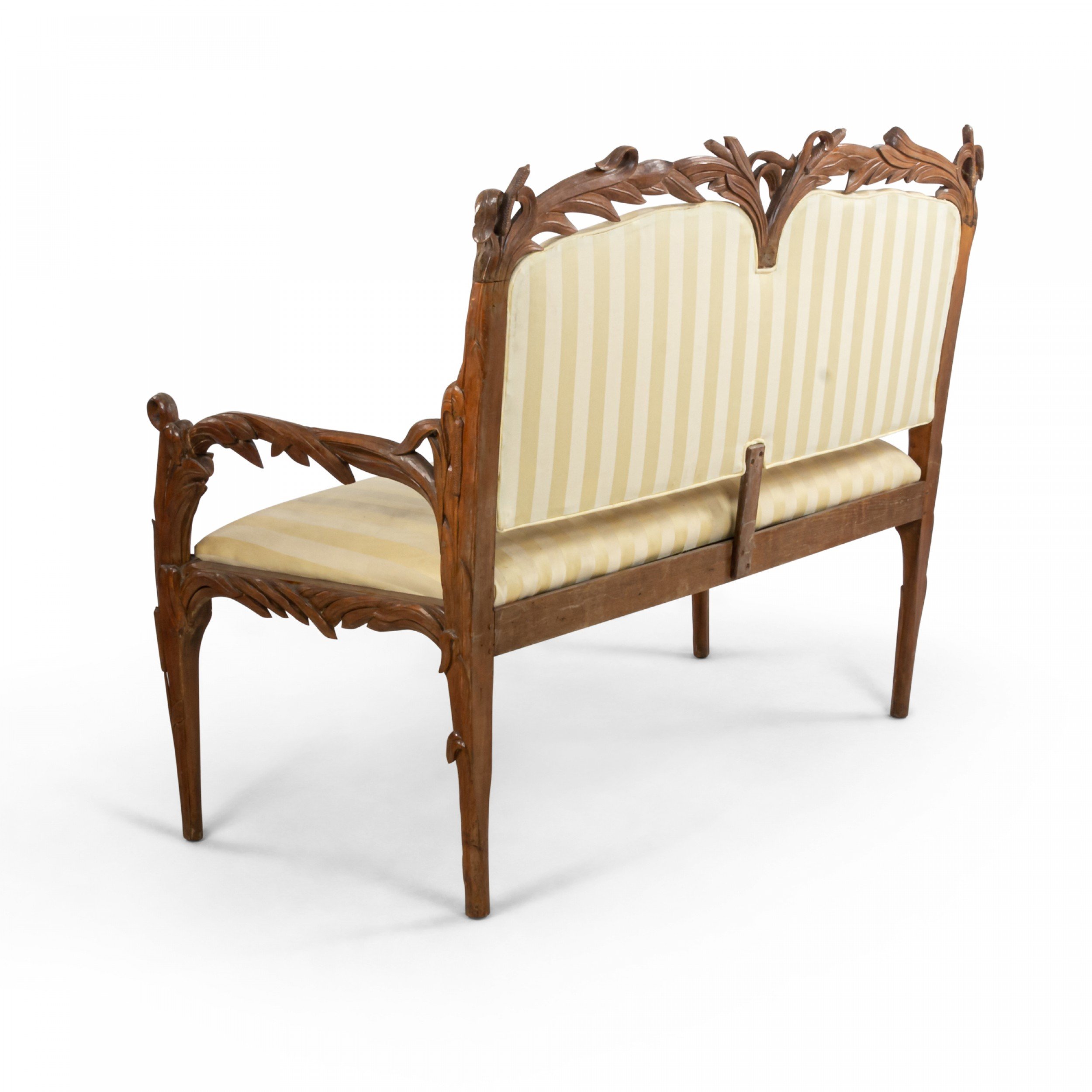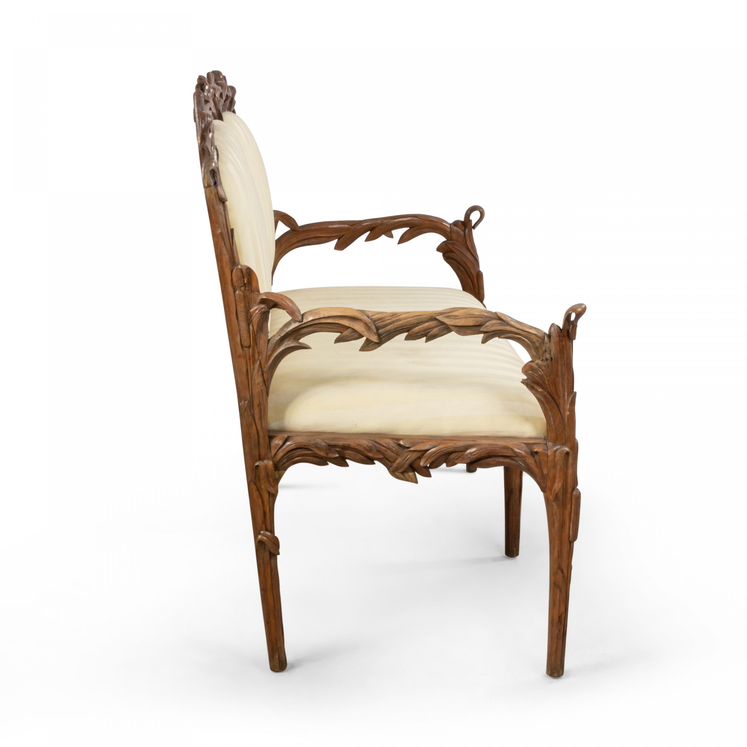 Rustic (Art Nouveau) Black Forest (19th Cen) walnut loveseat with floral carved frame and upholstered seat and back